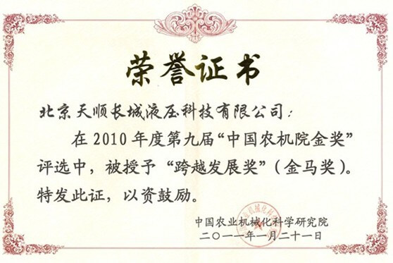 公司榮獲中國農(nóng)機(jī)院第九屆金馬獎
