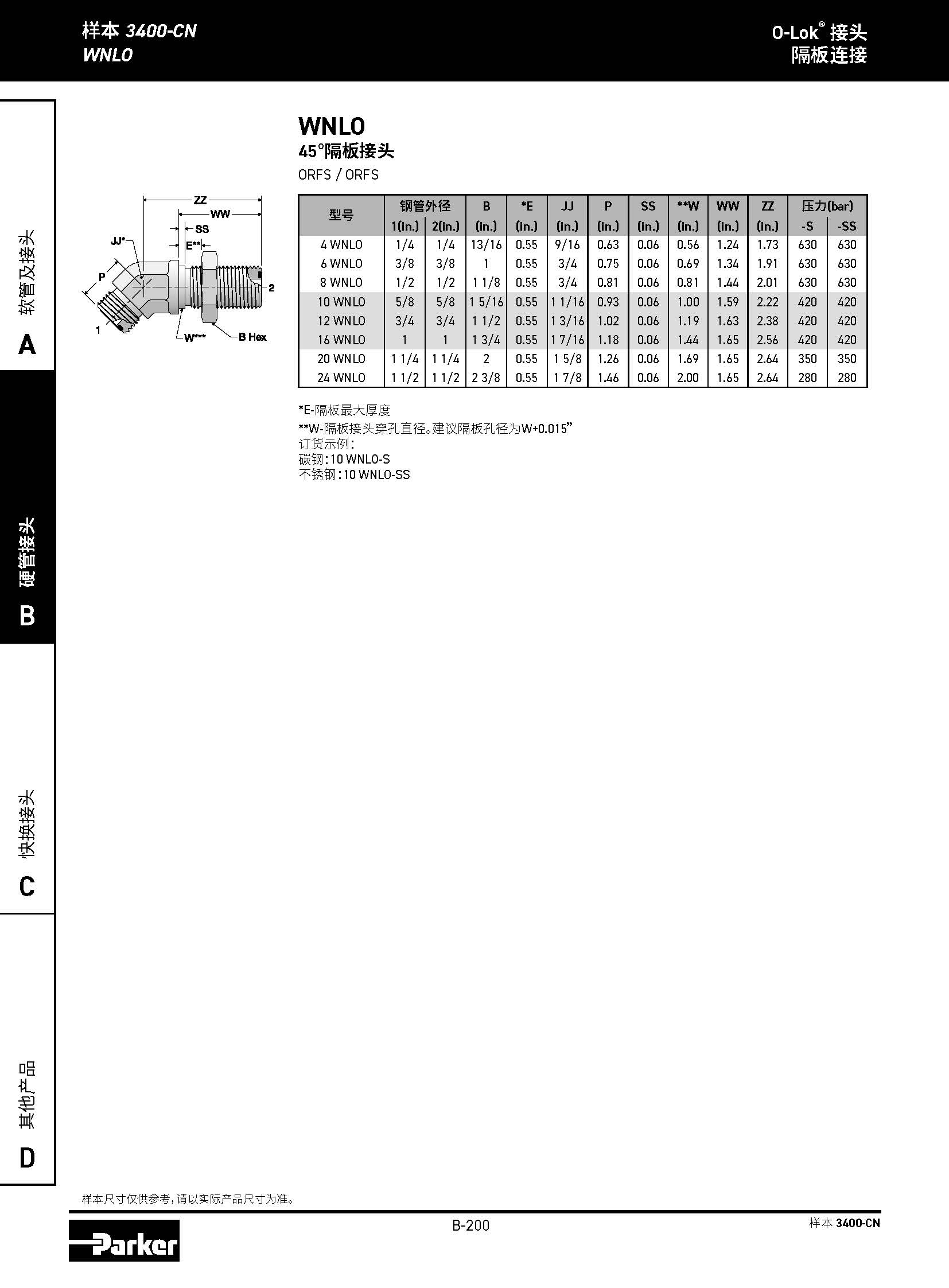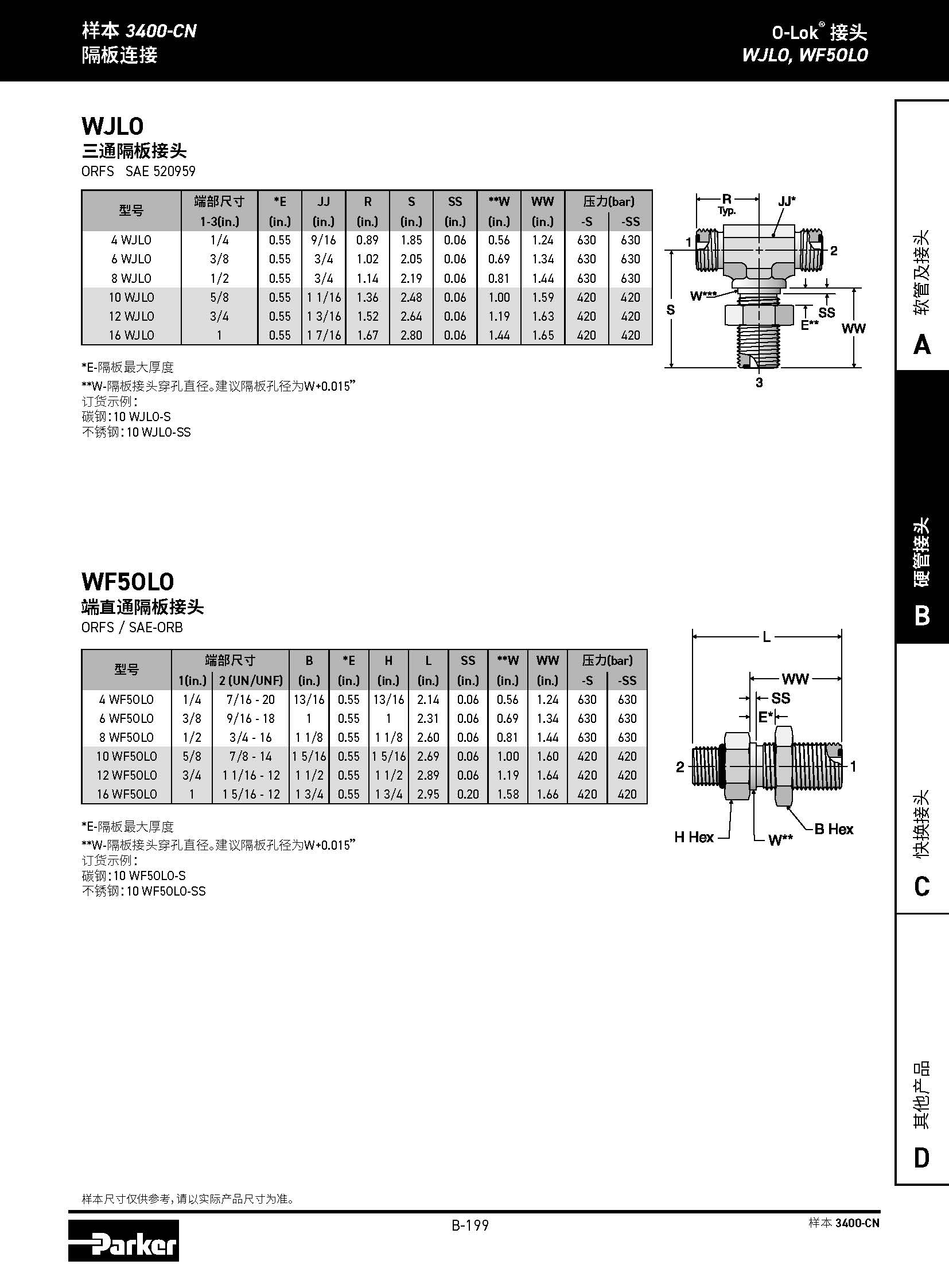 WF5OLO 端直通隔板接頭 ORFS / SAE-ORB
