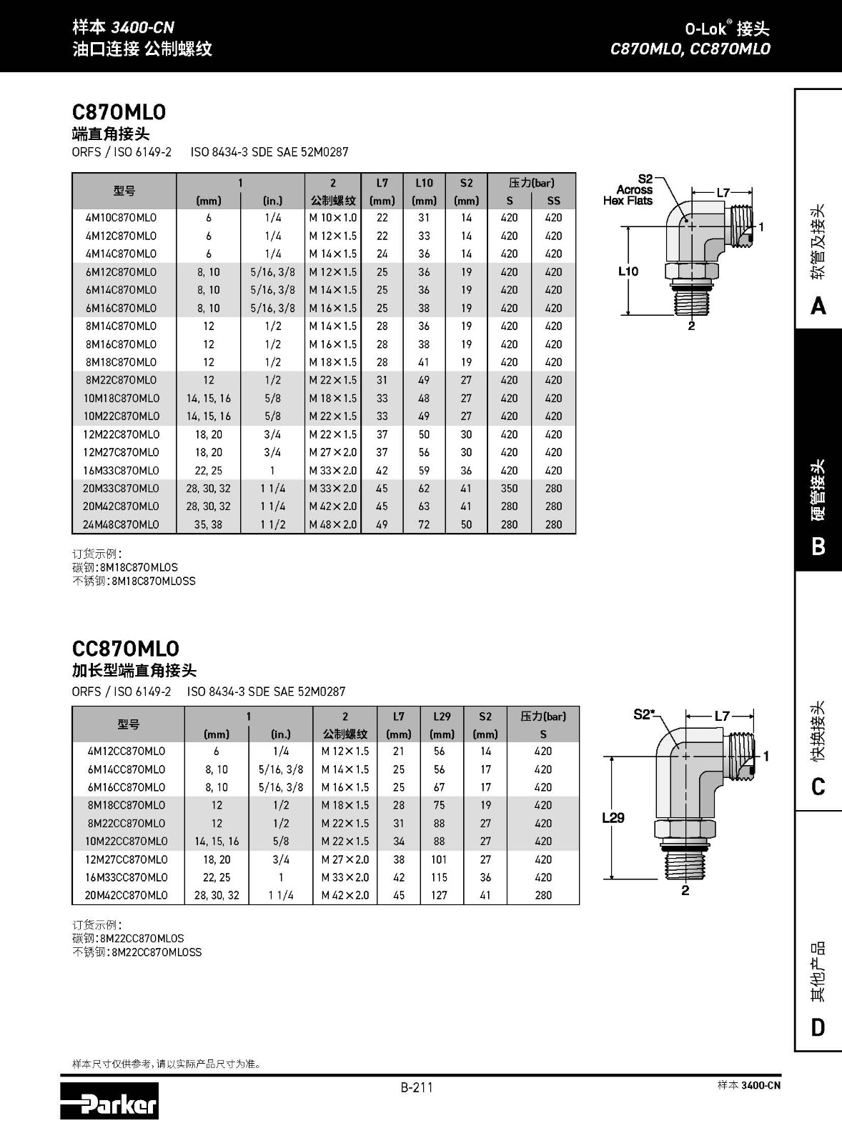 CC87OMLO 加長型端直角接頭 ORFS / ISO 6149-2 ISO 8434-3 SDE SAE 52M0287