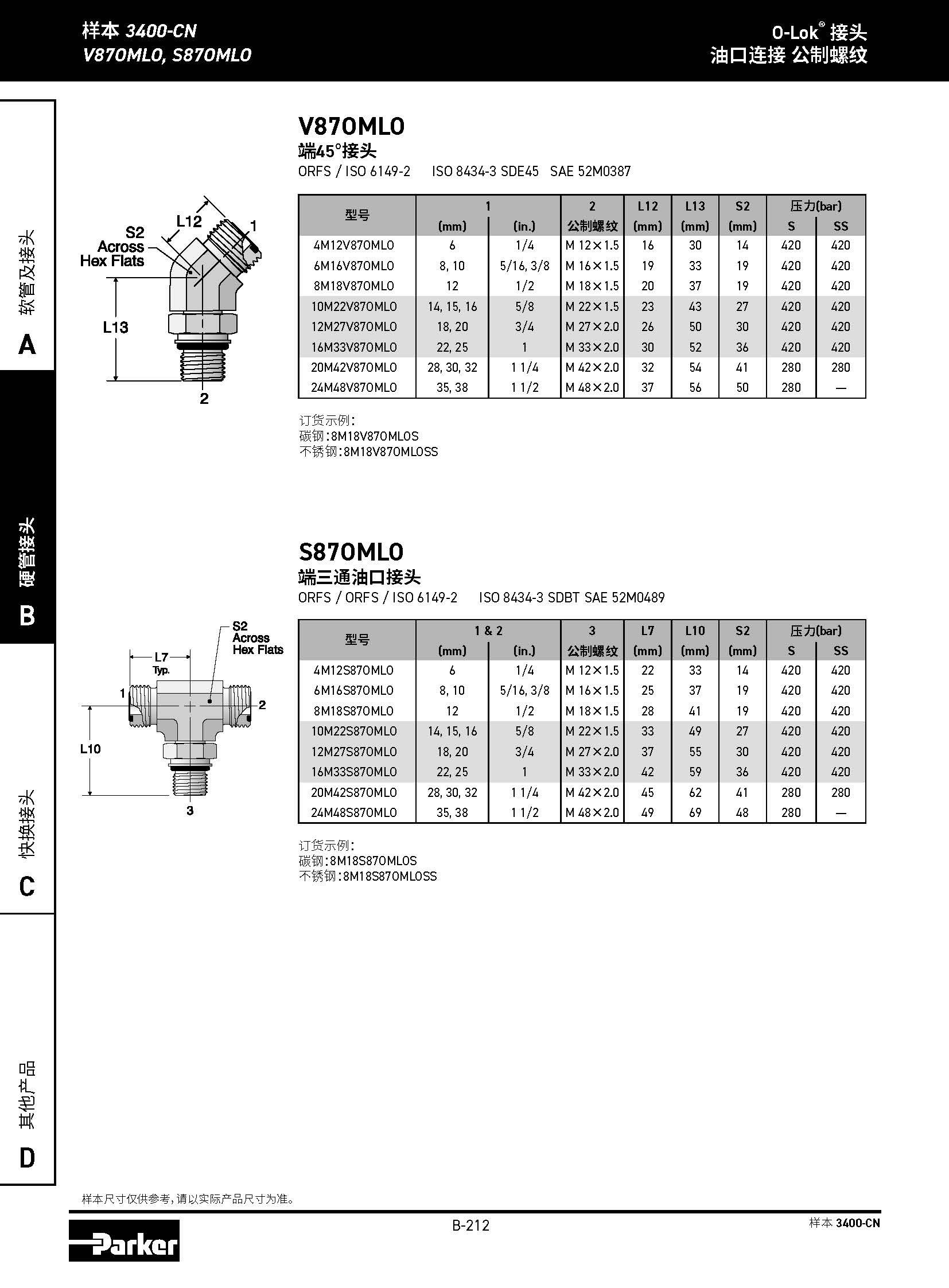 V87OMLO 端45°接頭 ORFS / ISO 6149-2 ISO 8434-3 SDE45 SAE 52M0387