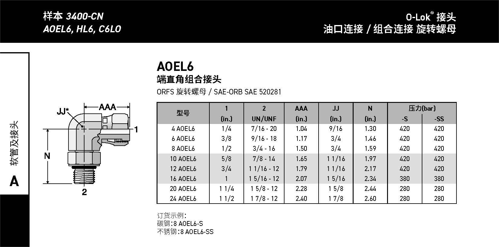 AOEL6 端直角組合接頭 ORFS 旋轉(zhuǎn)螺母 / SAE-ORB SAE 520281
