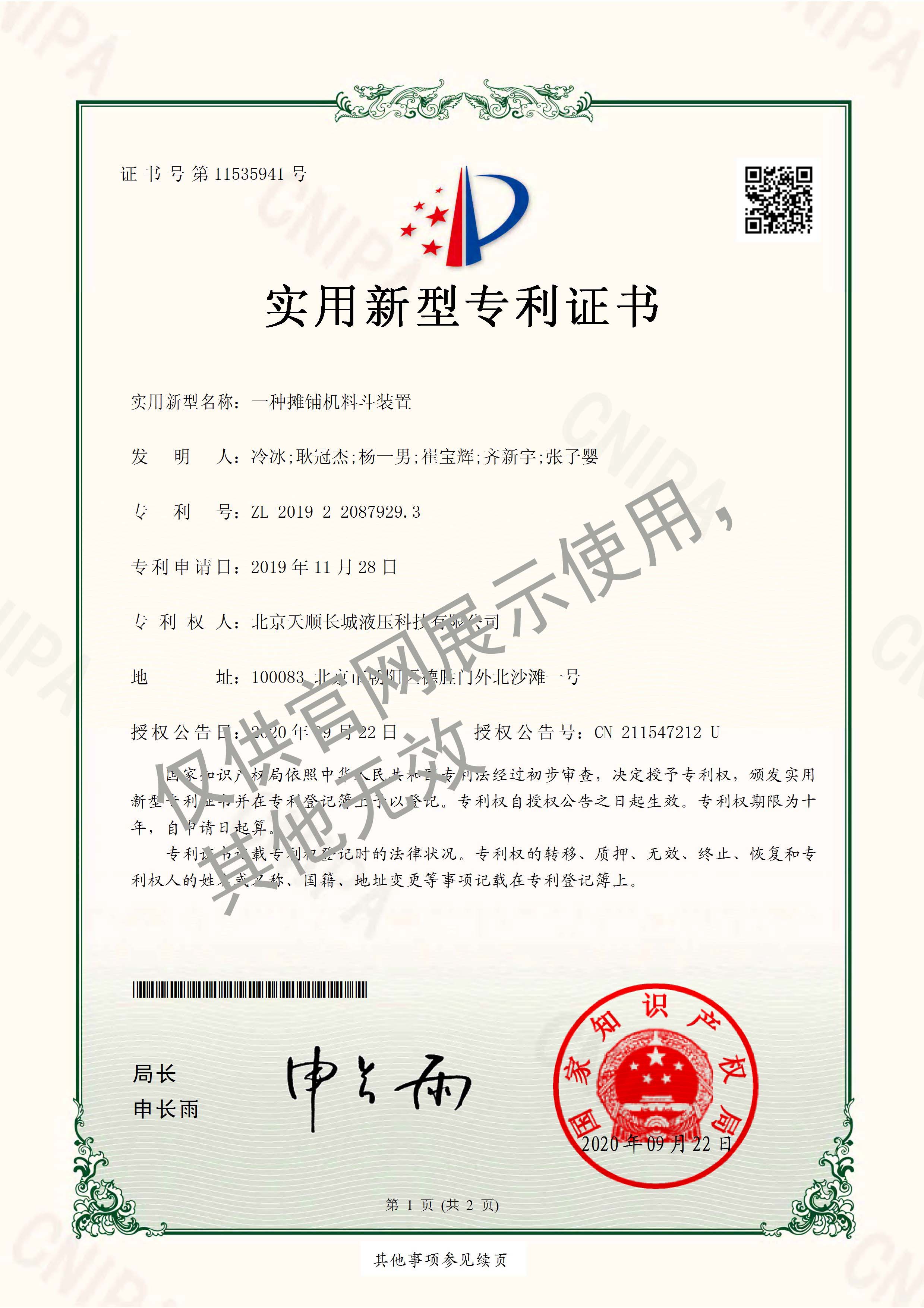 43-ZL201922087929.3實用新型專利-一種攤鋪機料斗裝置2019.11.28