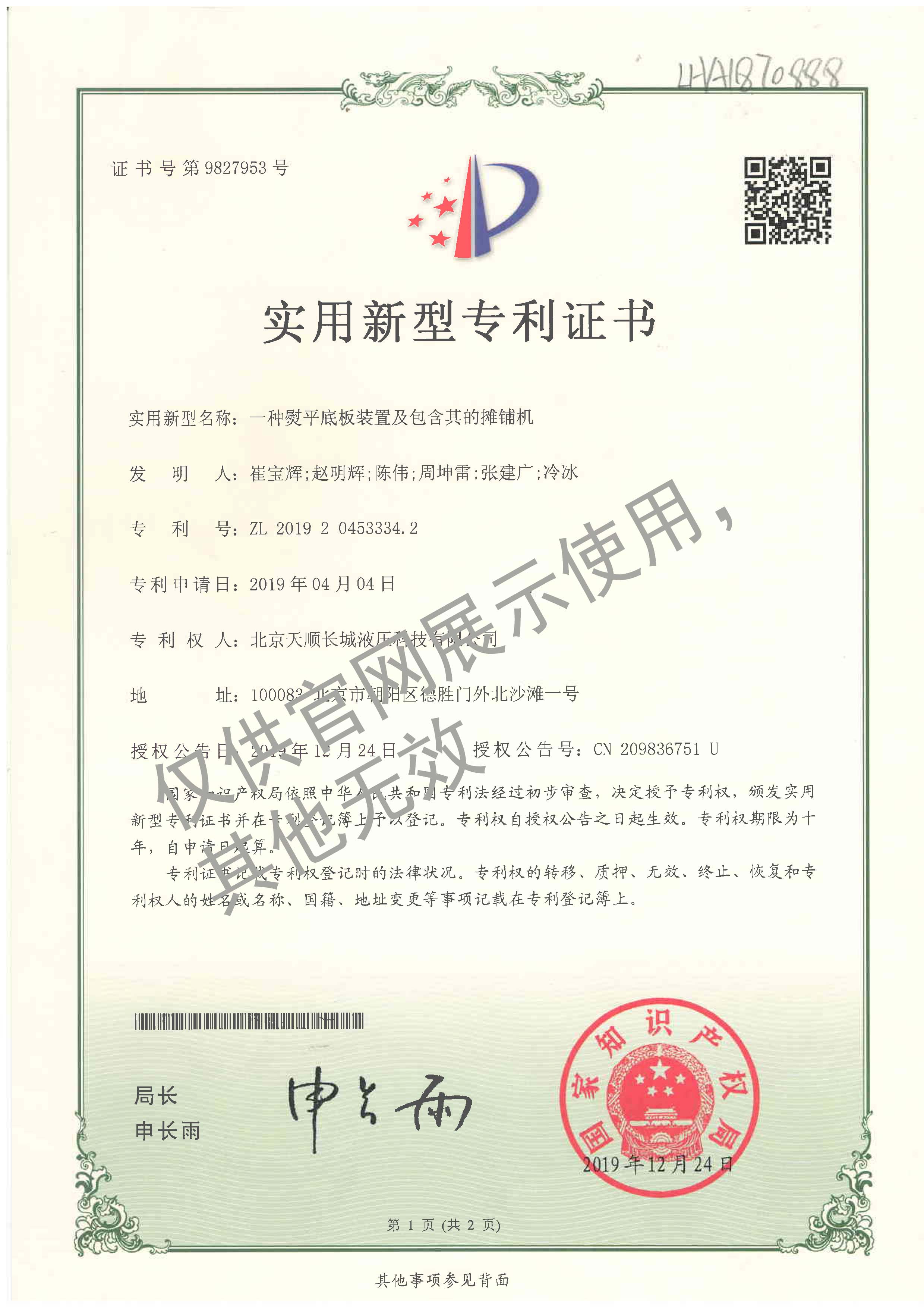 35-ZL201920360613.4實(shí)用新型專利-一種熨平底板裝置及包含其的攤鋪機(jī)20190404