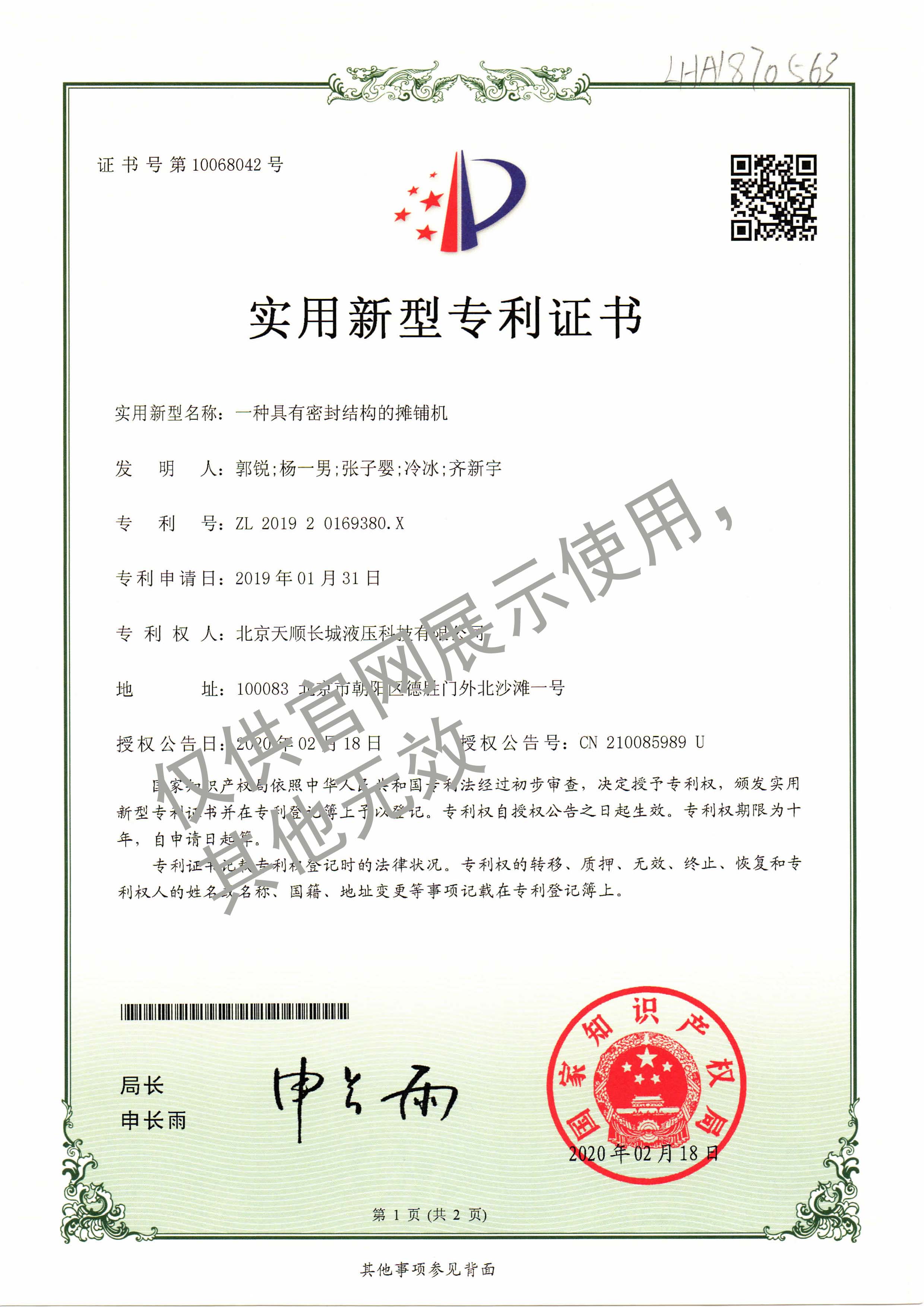 33-ZL201920169380.X實(shí)用新型專利-一種具有密封結(jié)構(gòu)的攤鋪機(jī)20190131
