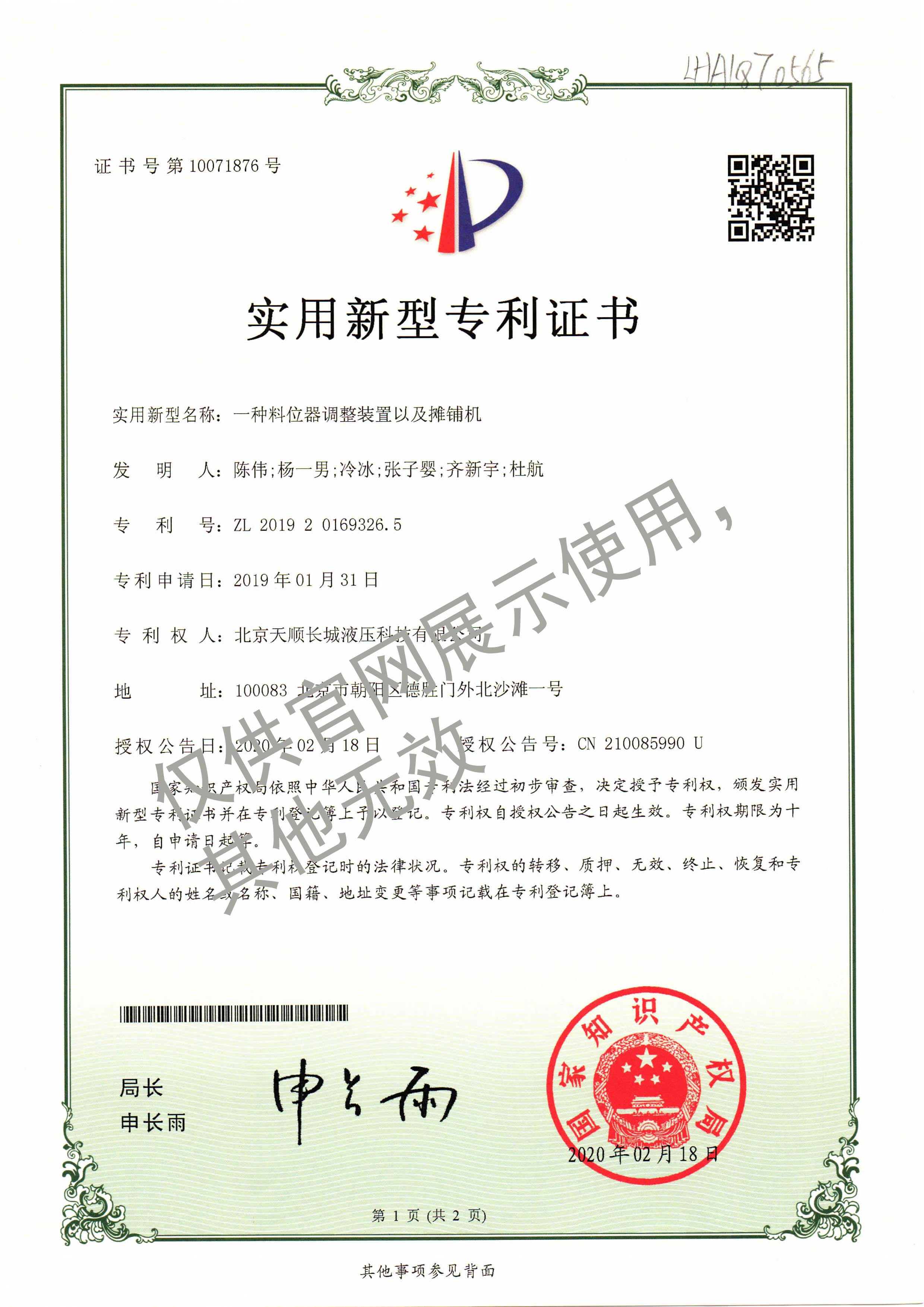 32-ZL201920169326.5實(shí)用新型專利-一種料位器調(diào)整裝置以及攤鋪機(jī)20190131
