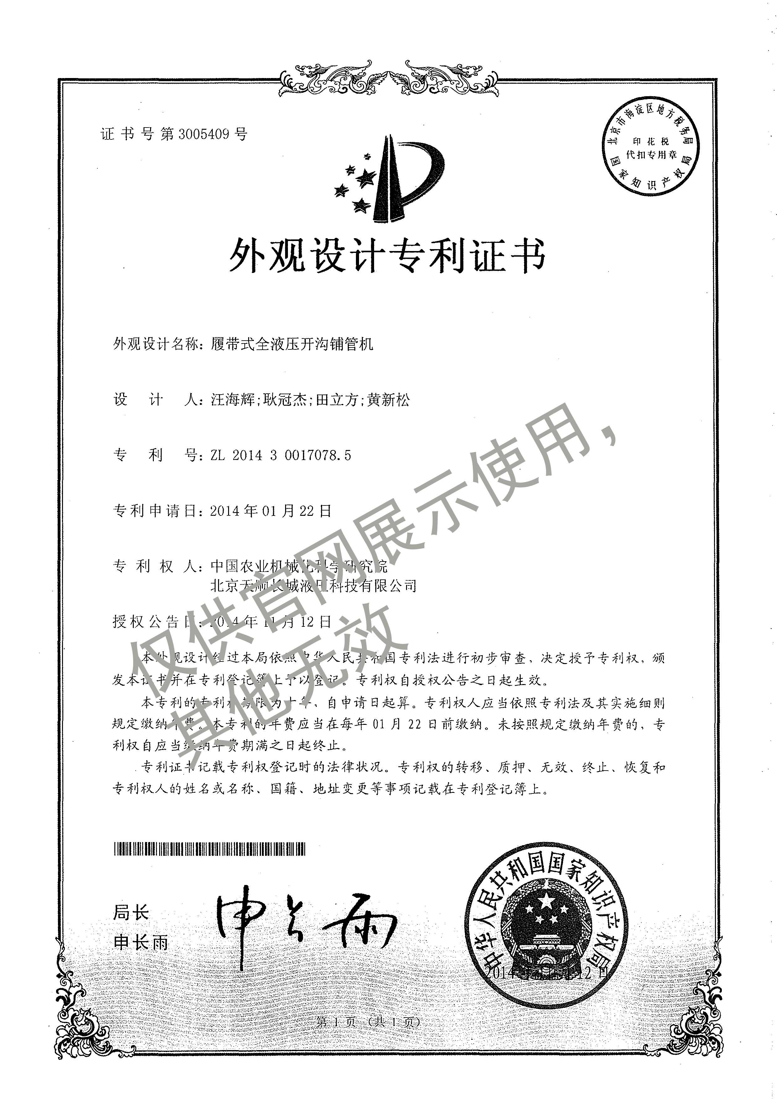 13-ZL201430017078.5外觀設(shè)計(jì)專利-履帶式全液壓開溝鋪管機(jī)