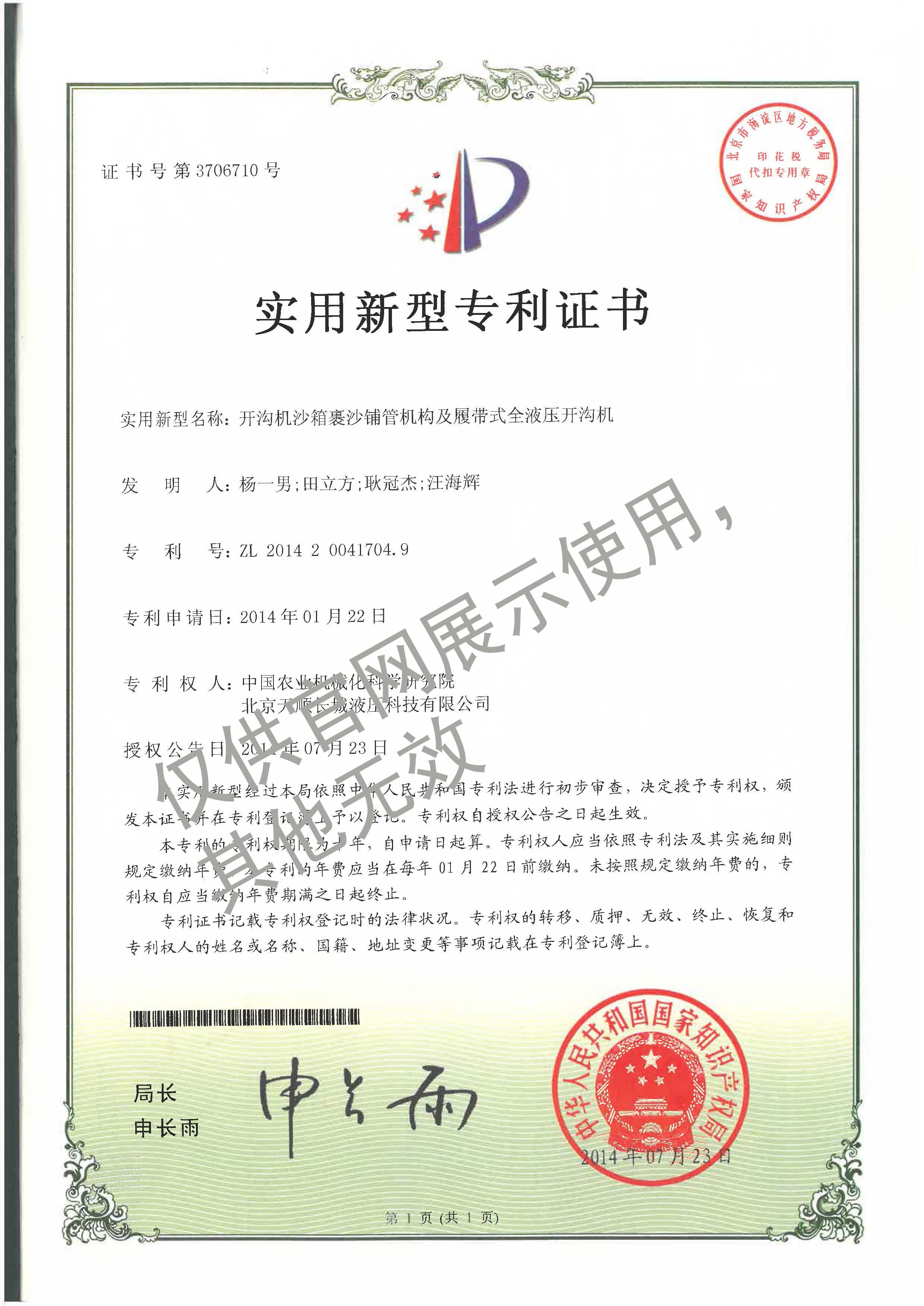 12-ZL201110442406.1實(shí)用新型專利 -開溝機(jī)沙箱裹沙鋪管機(jī)構(gòu)及履帶式全液壓開溝機(jī)20140122