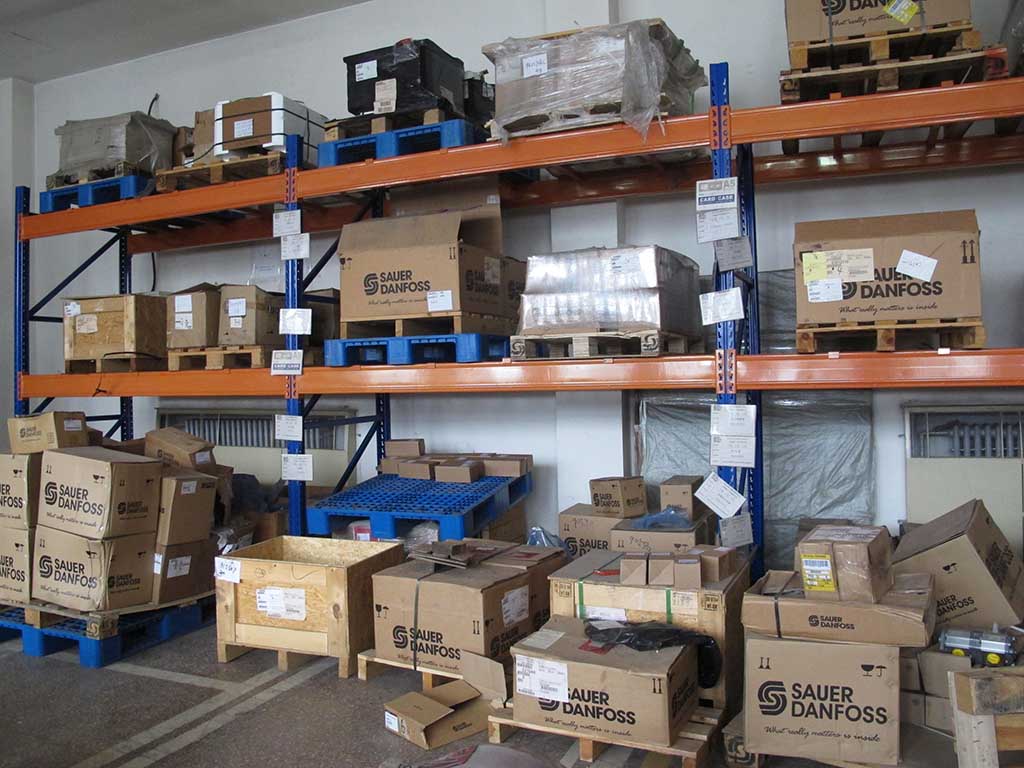 丹佛斯部(原薩澳部)在北京和上海都設(shè)有庫(kù)房。北京的整件大庫(kù)房位于公司總部,中國(guó)農(nóng)機(jī)院內(nèi),高5米,占地200平。上海庫(kù)房與丹佛斯公司(原薩澳)交通便利,便于及時(shí)提、發(fā)貨。此外,維修保障中心還設(shè)有零備件庫(kù)房,庫(kù)存充足。