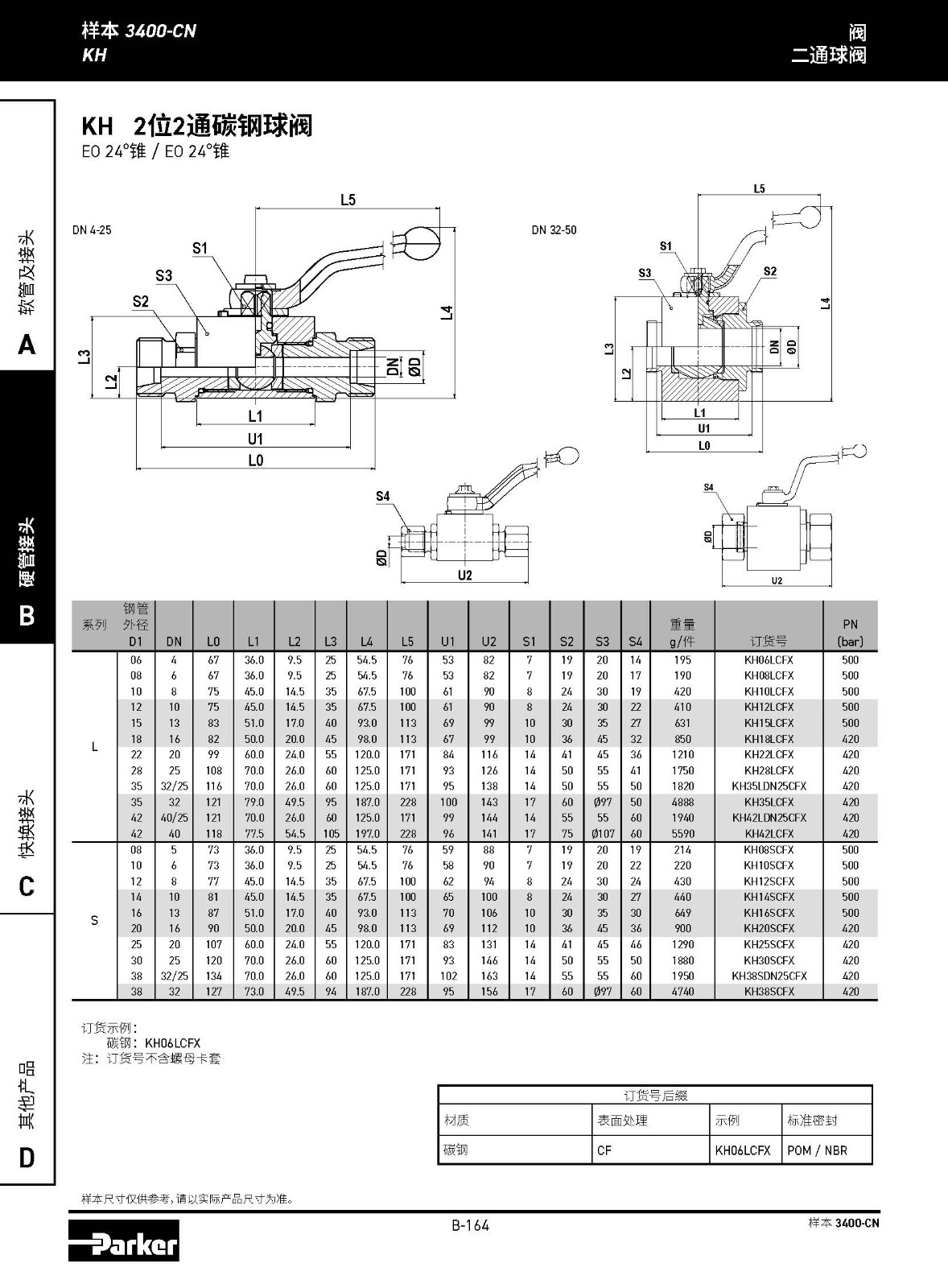 KH 2位2通碳鋼球閥 EO 24°錐 / EO 24°錐