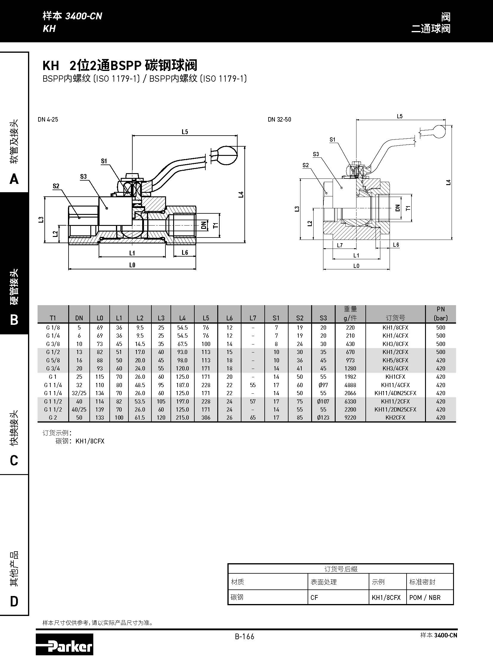 KH 2位2通BSPP 碳鋼球閥 BSPP內(nèi)螺紋 (ISO 1179-1) / BSPP內(nèi)螺紋 (ISO 1179-1)