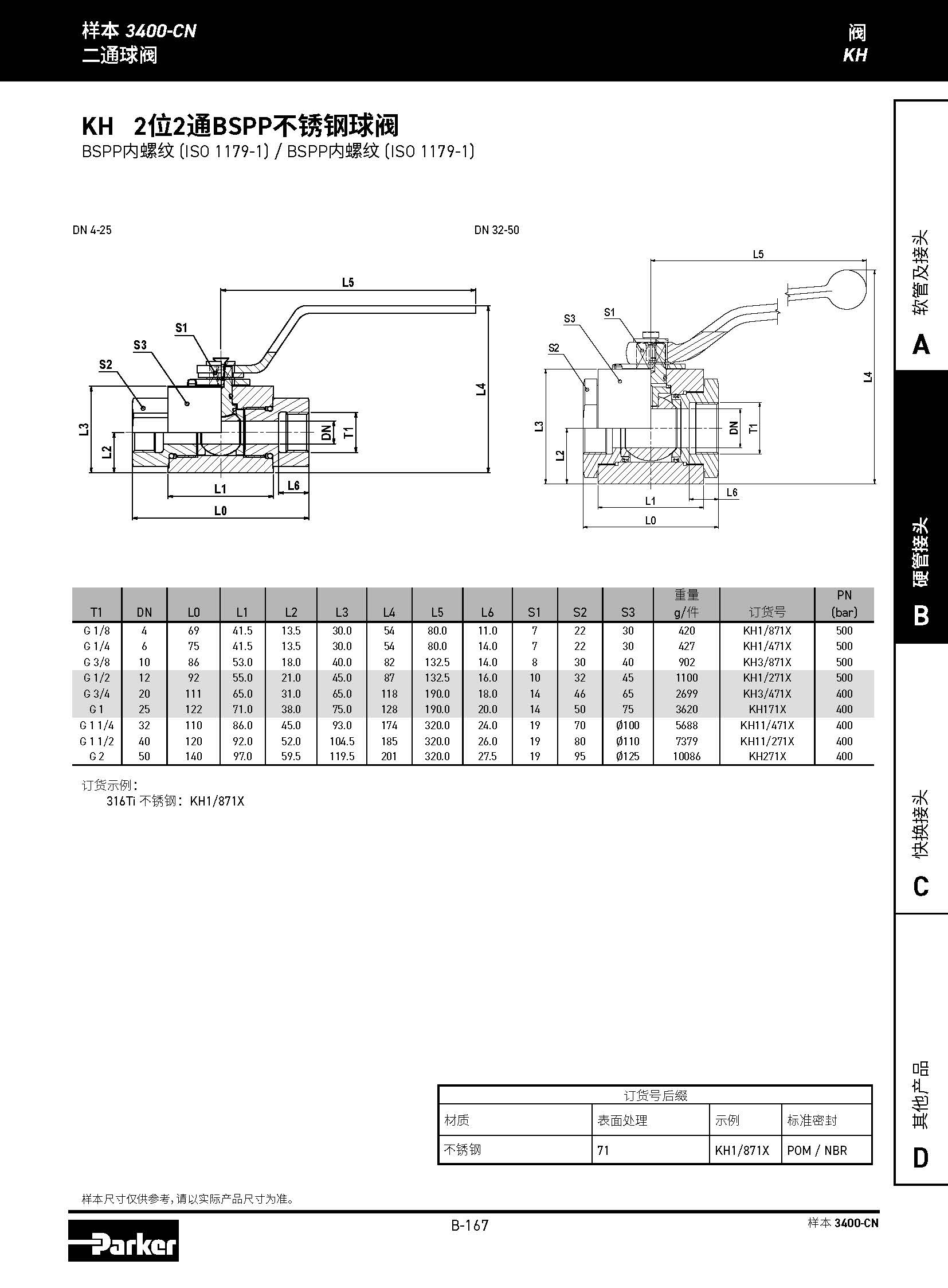 KH 2位2通BSPP不銹鋼球閥 BSPP內(nèi)螺紋 (ISO 1179-1) / BSPP內(nèi)螺紋 (ISO 1179-1)