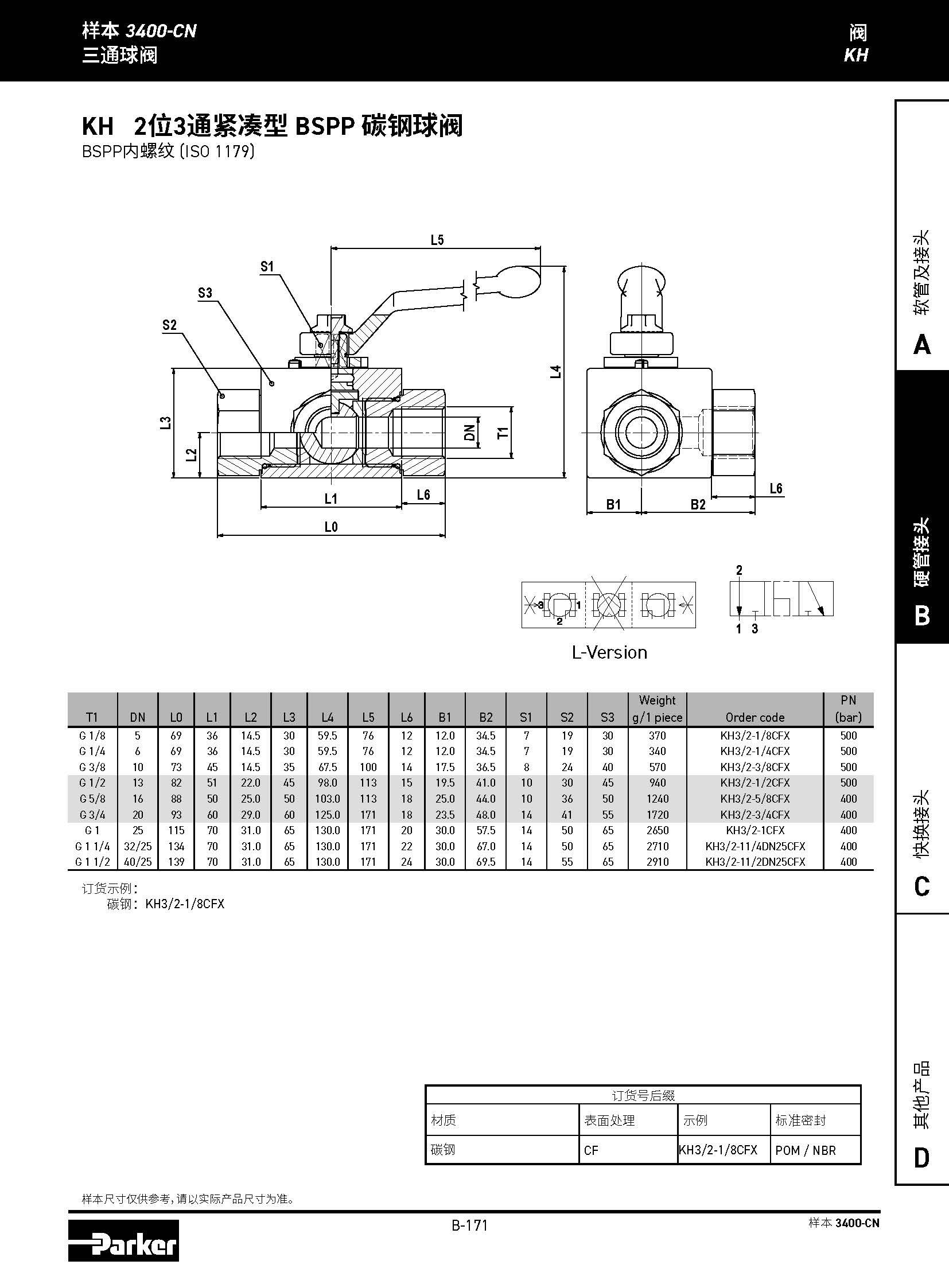 KH 2位3通緊湊型 BSPP 碳鋼球閥 BSPP內(nèi)螺紋 (ISO 1179)