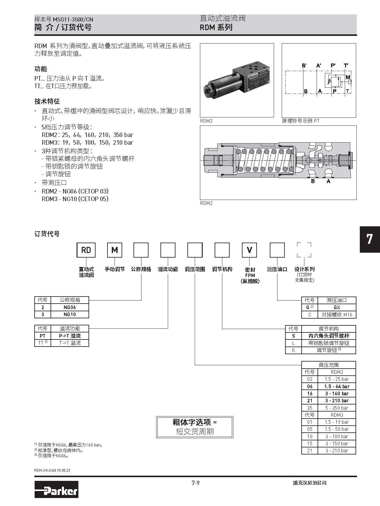 RDM 系列為滑閥型,直動(dòng)疊加式溢流閥,可將液壓系統(tǒng)壓 力釋放至調(diào)定值。