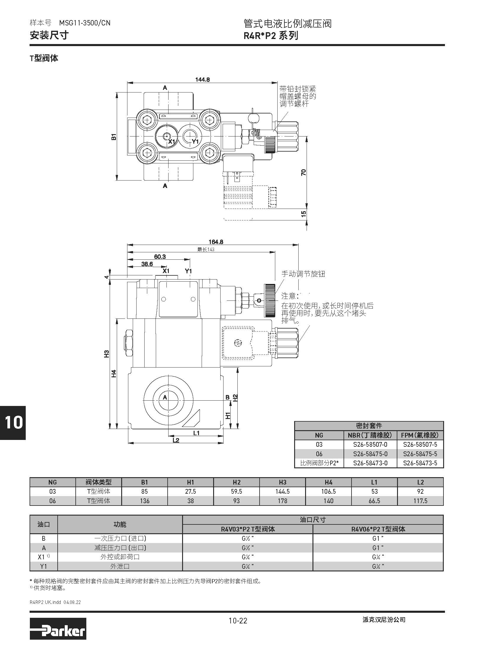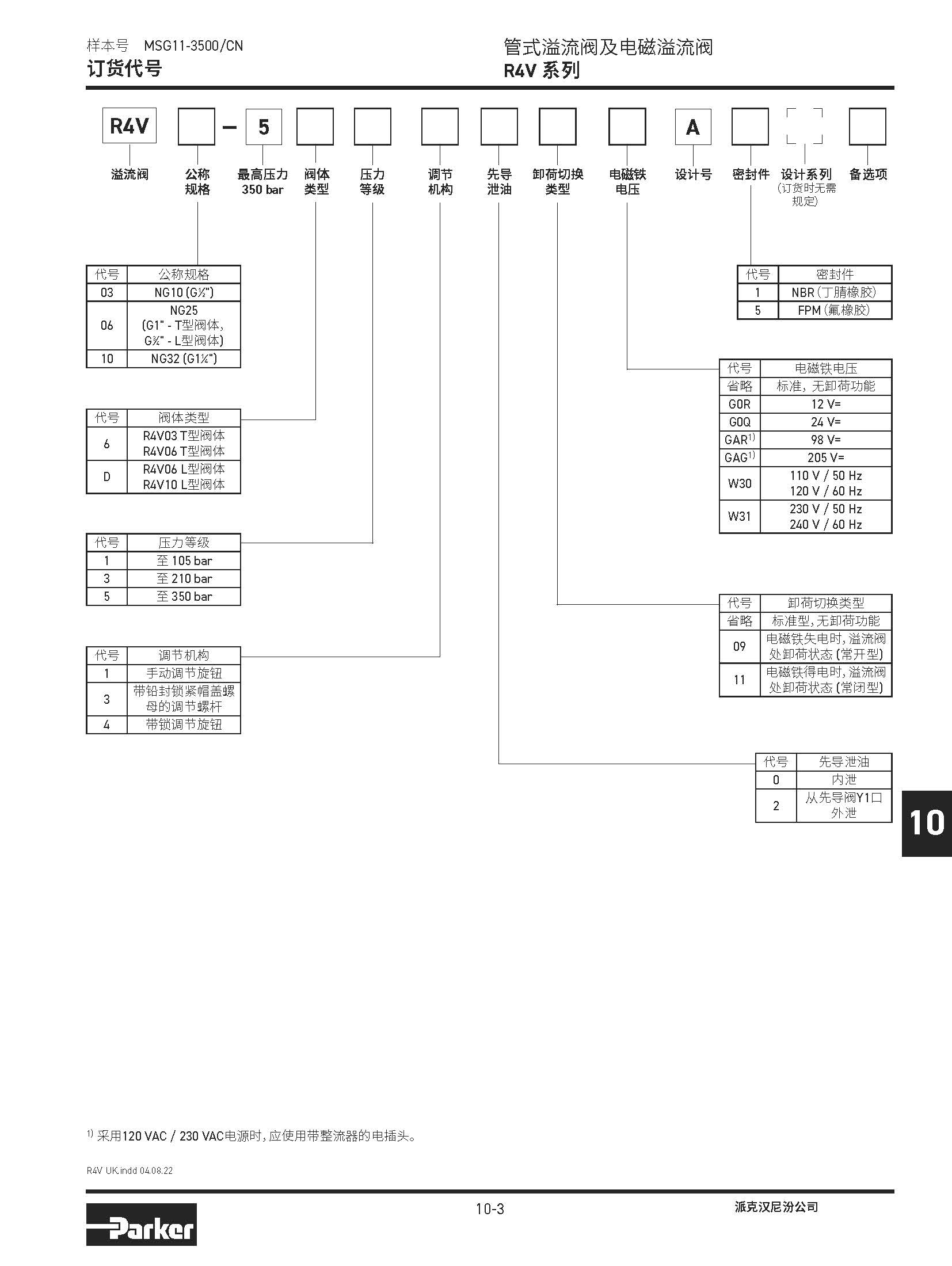 R4V*P2系列管式電液比例溢流閥的設(shè)計(jì)以機(jī)械調(diào)節(jié)的R4V 系列管式溢流閥為基礎(chǔ),增加的電磁比例操控先導(dǎo)單元疊 加安裝在機(jī)械操控先導(dǎo)閥與主級(jí)閥之間,可實(shí)現(xiàn)壓力連續(xù) 調(diào)節(jié)的功能。