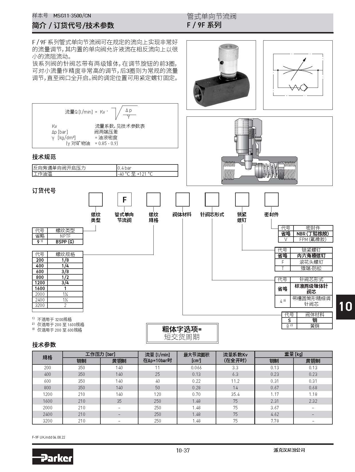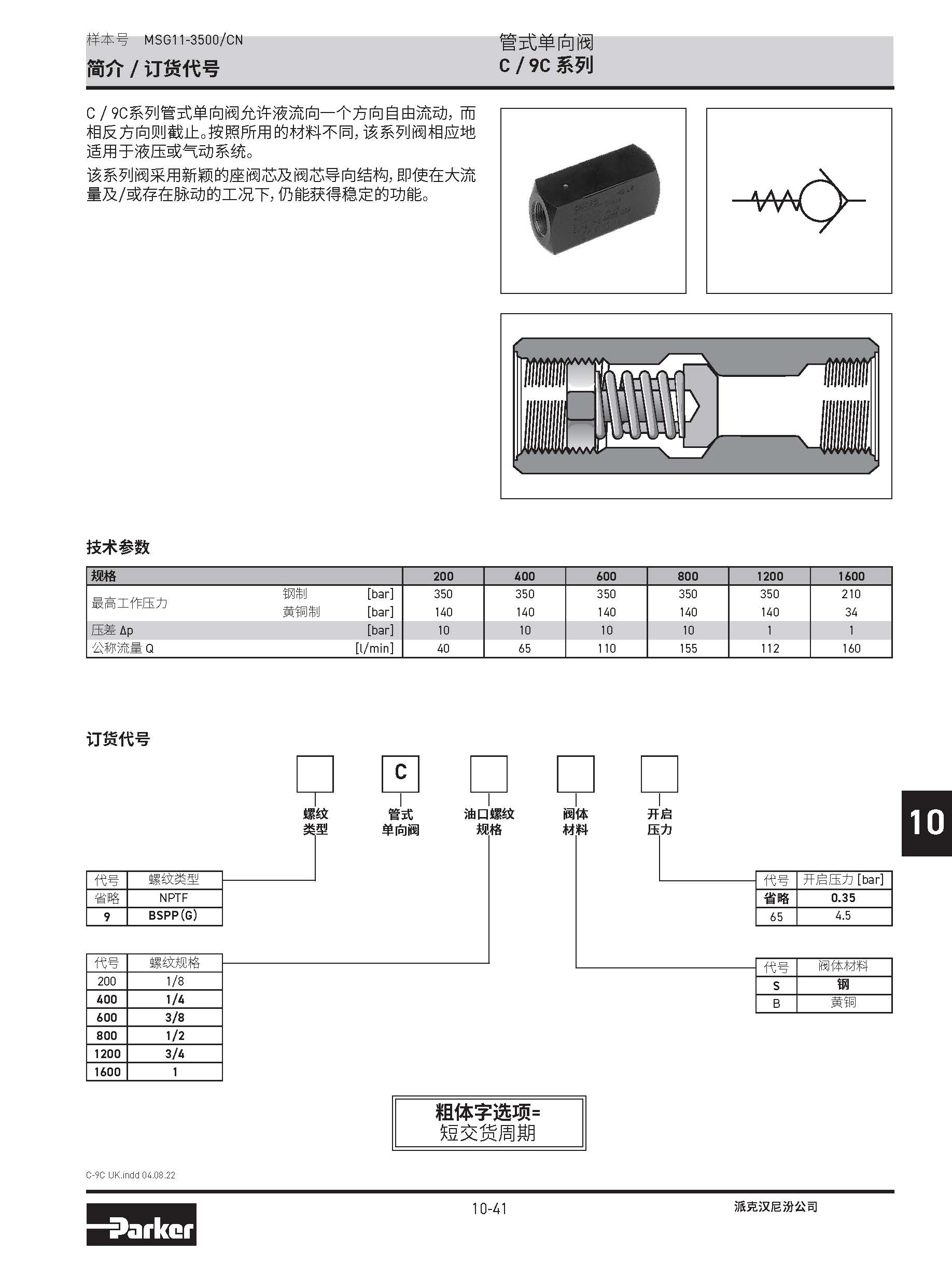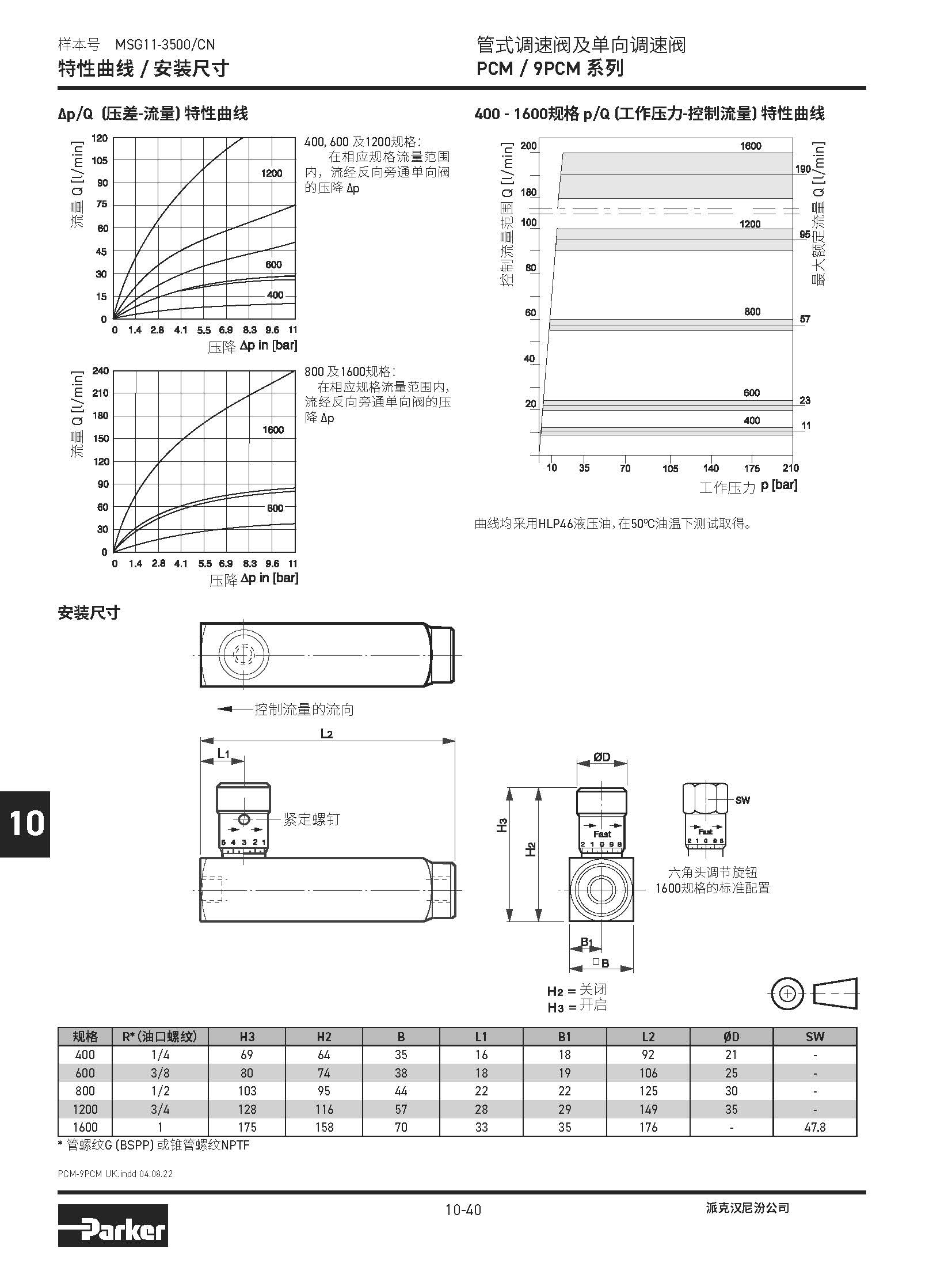 管式調(diào)速閥及單向調(diào)速閥 PCM / 9PCM 系列