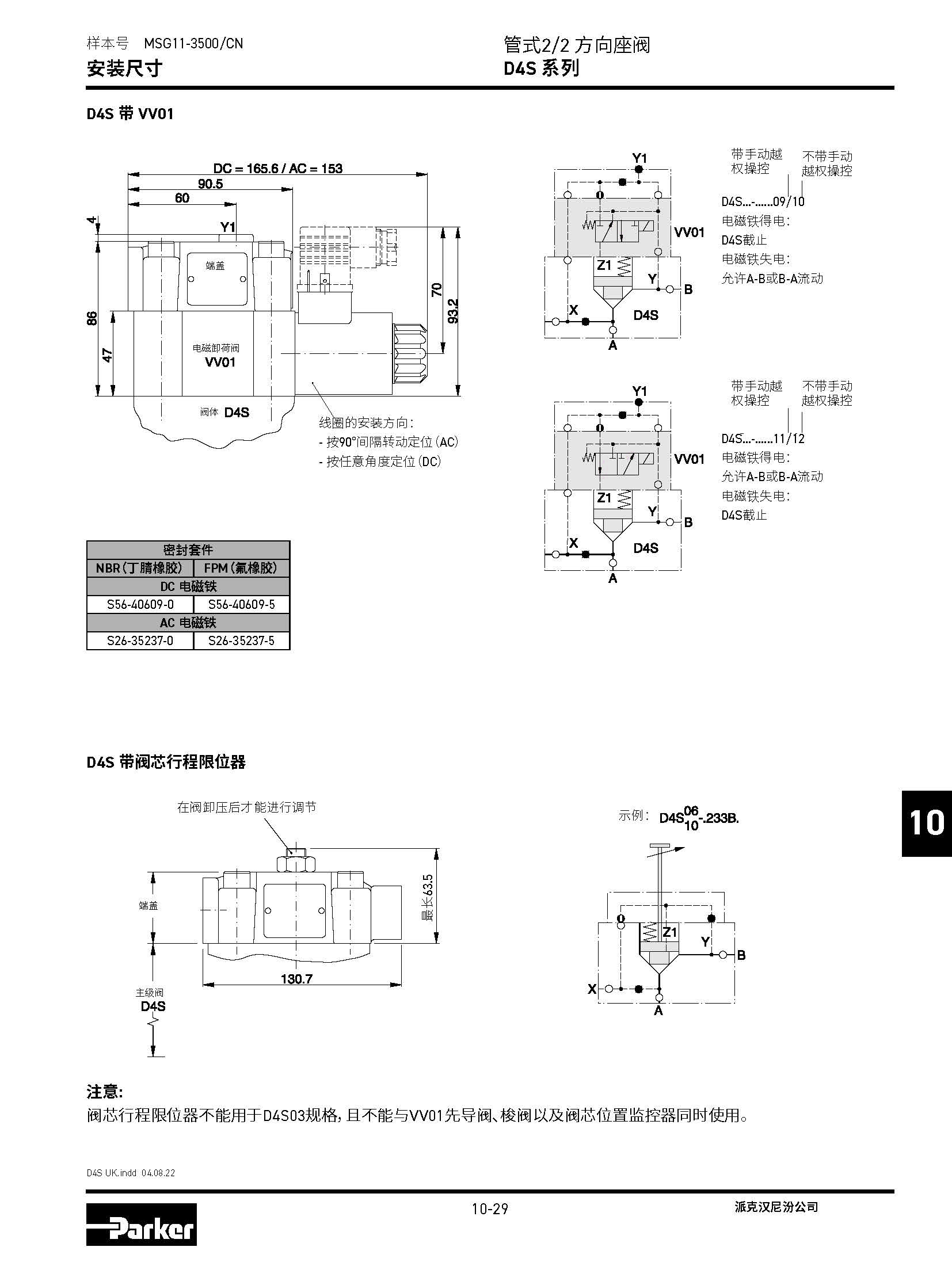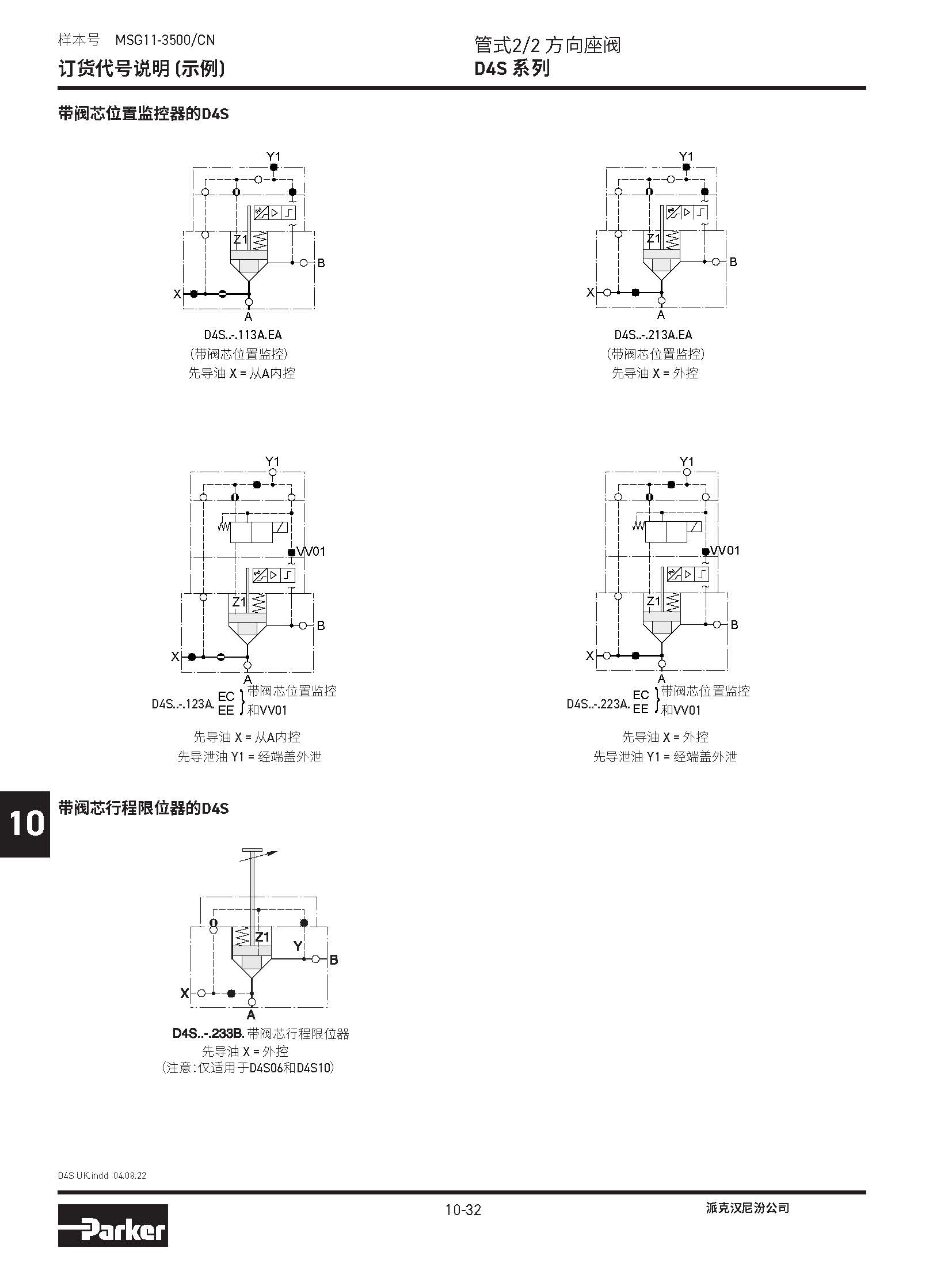 D4S系列管式二通座閥設(shè)計(jì)用于方向控制功能,由于其閥 芯、主閥彈簧以及控制蓋板的品種類(lèi)型豐富(控制蓋板可安 裝先導(dǎo)梭閥、閥芯行程限位器、先導(dǎo)電磁閥 VV01以及閥芯位 置監(jiān)控開(kāi)關(guān)等),可以選用它們組成額定流量達(dá)600l/min的 獨(dú)立液壓回路。