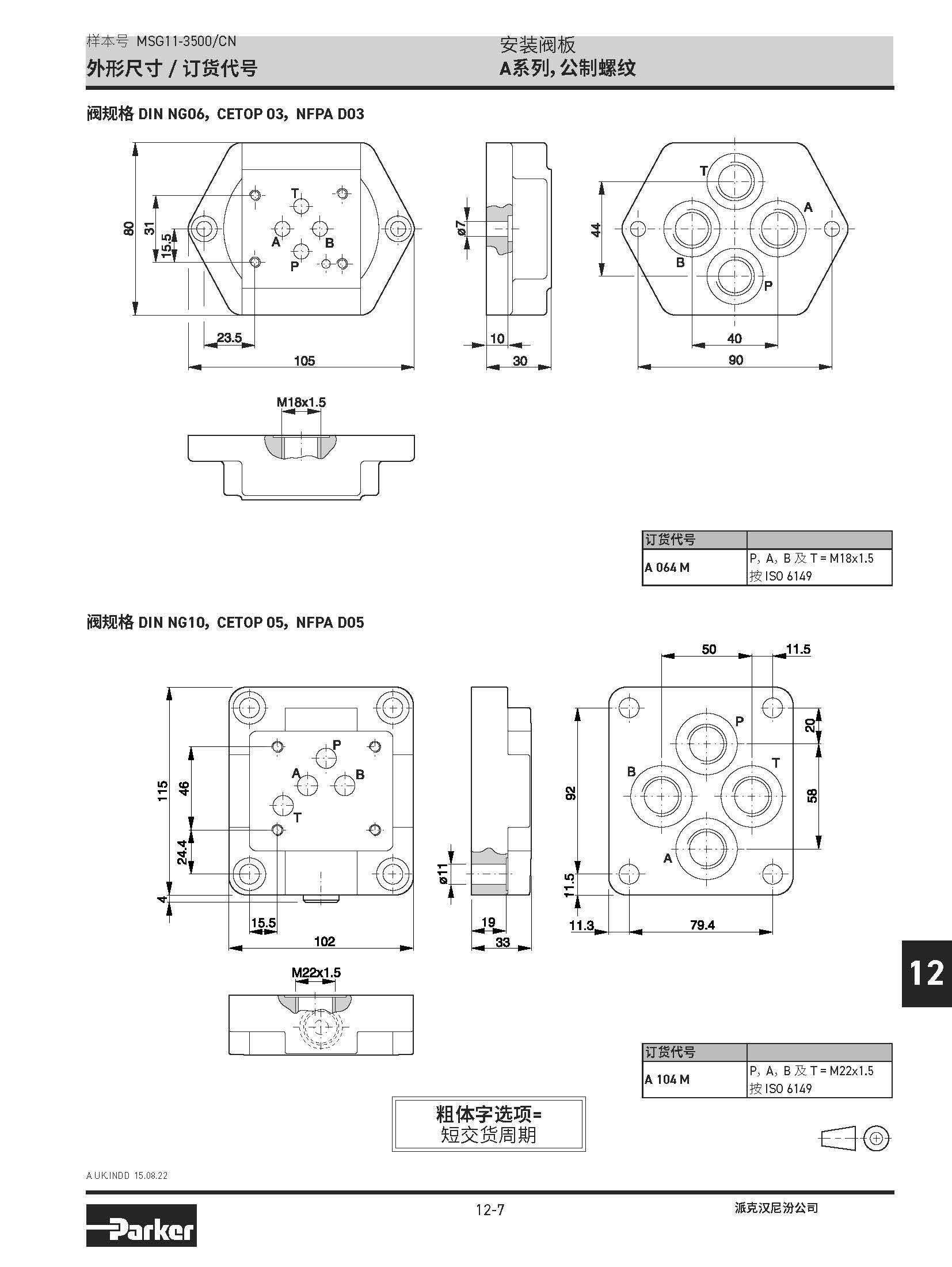 安裝閥板 A系列,公制螺紋