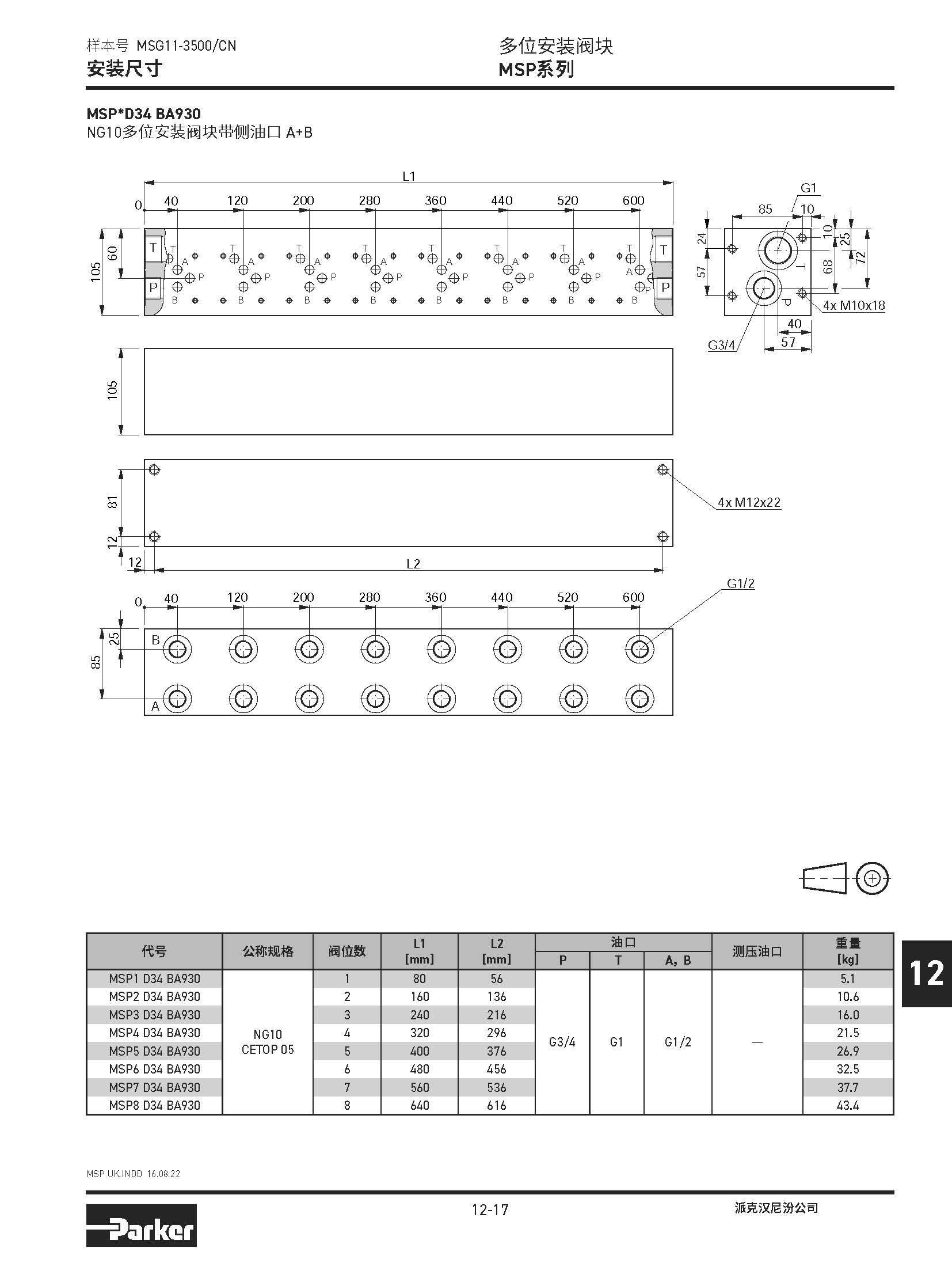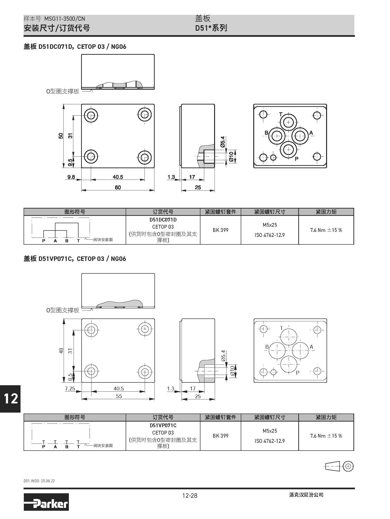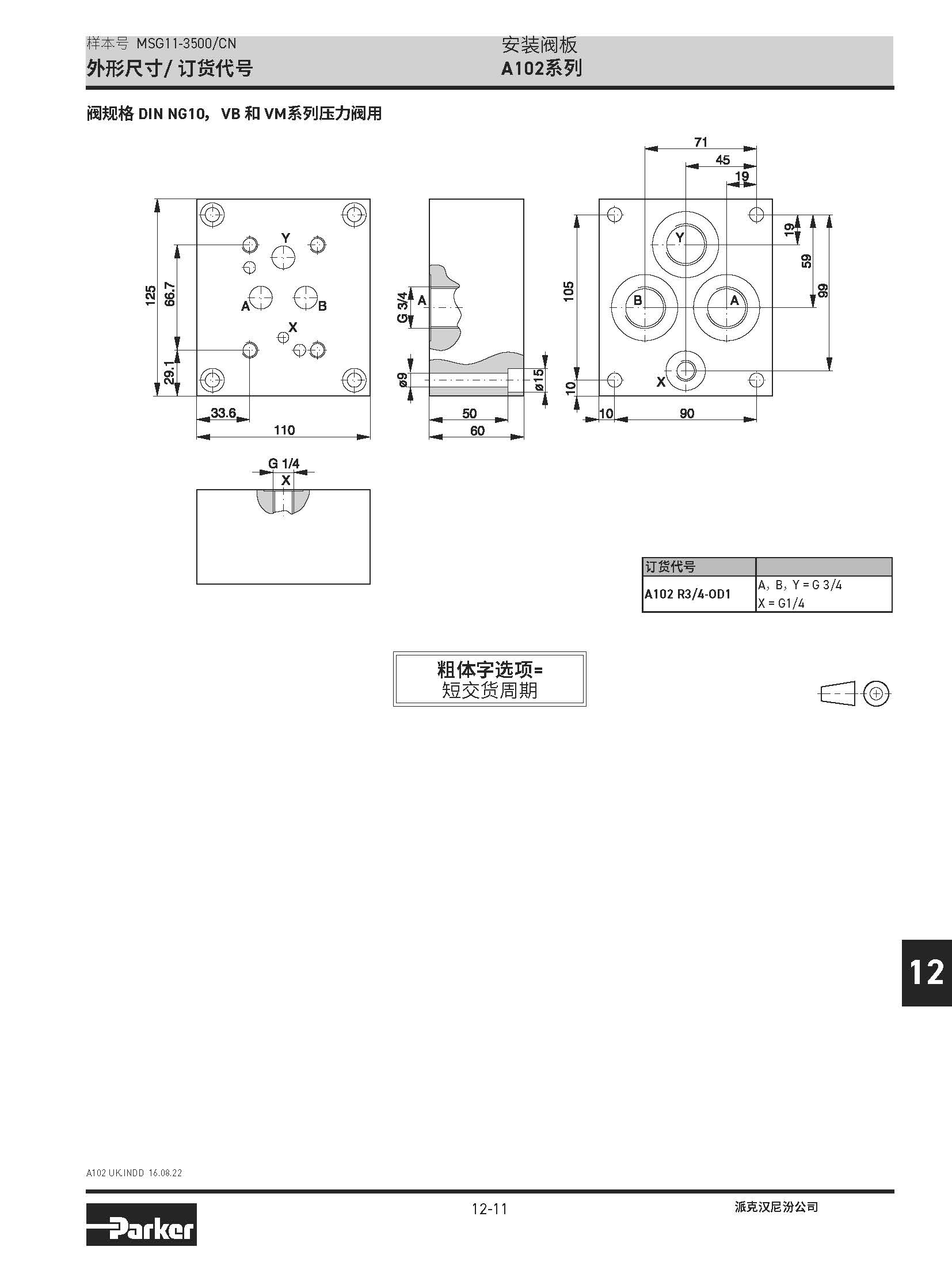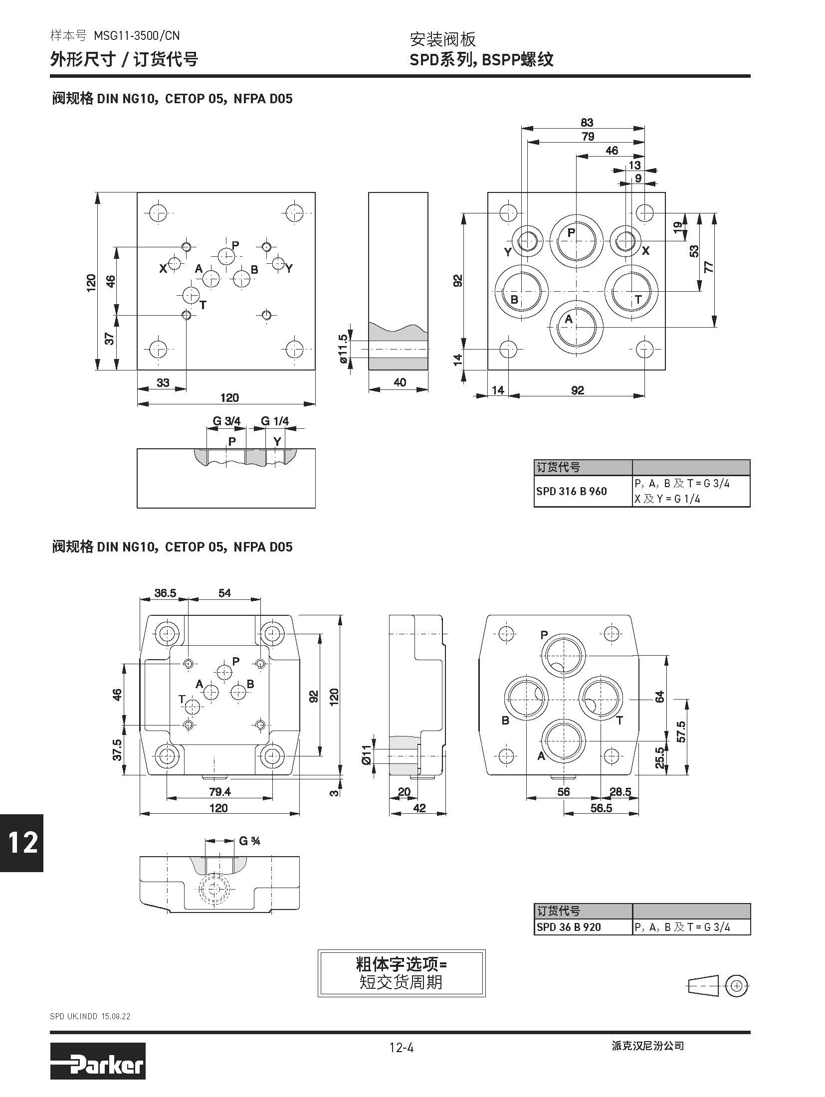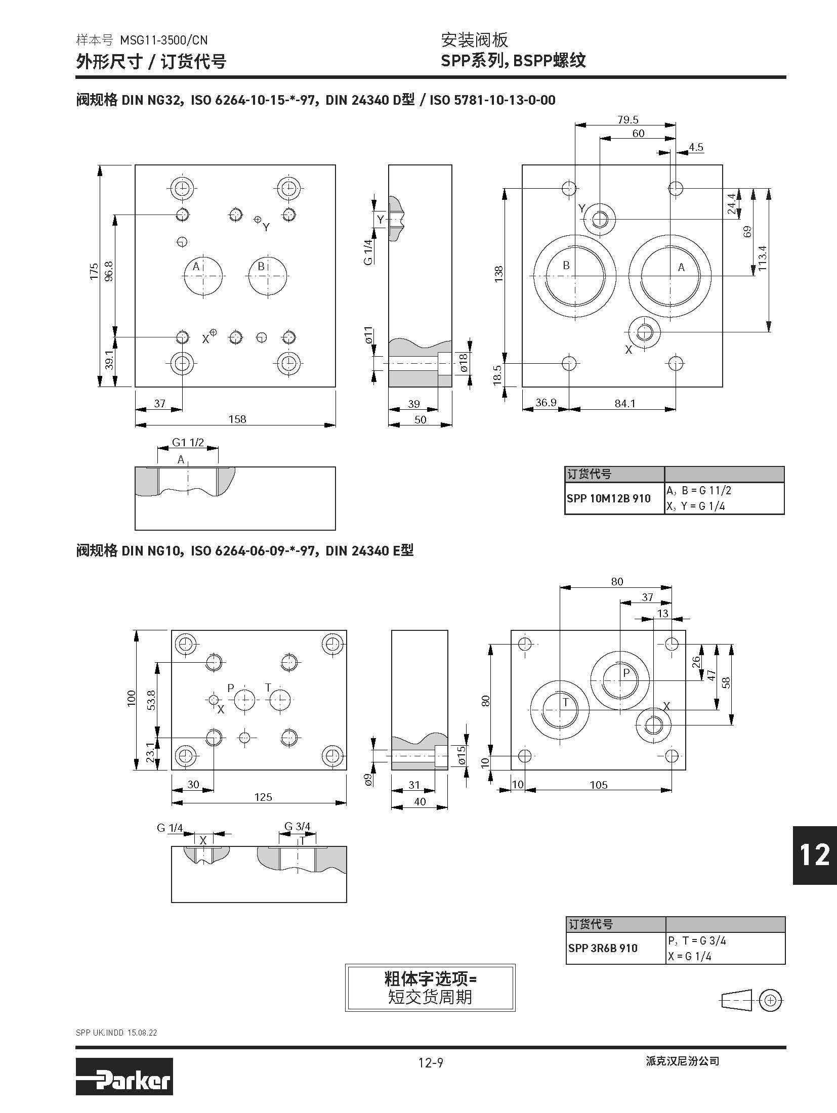 安裝閥板 SPD系列,BSPP螺紋