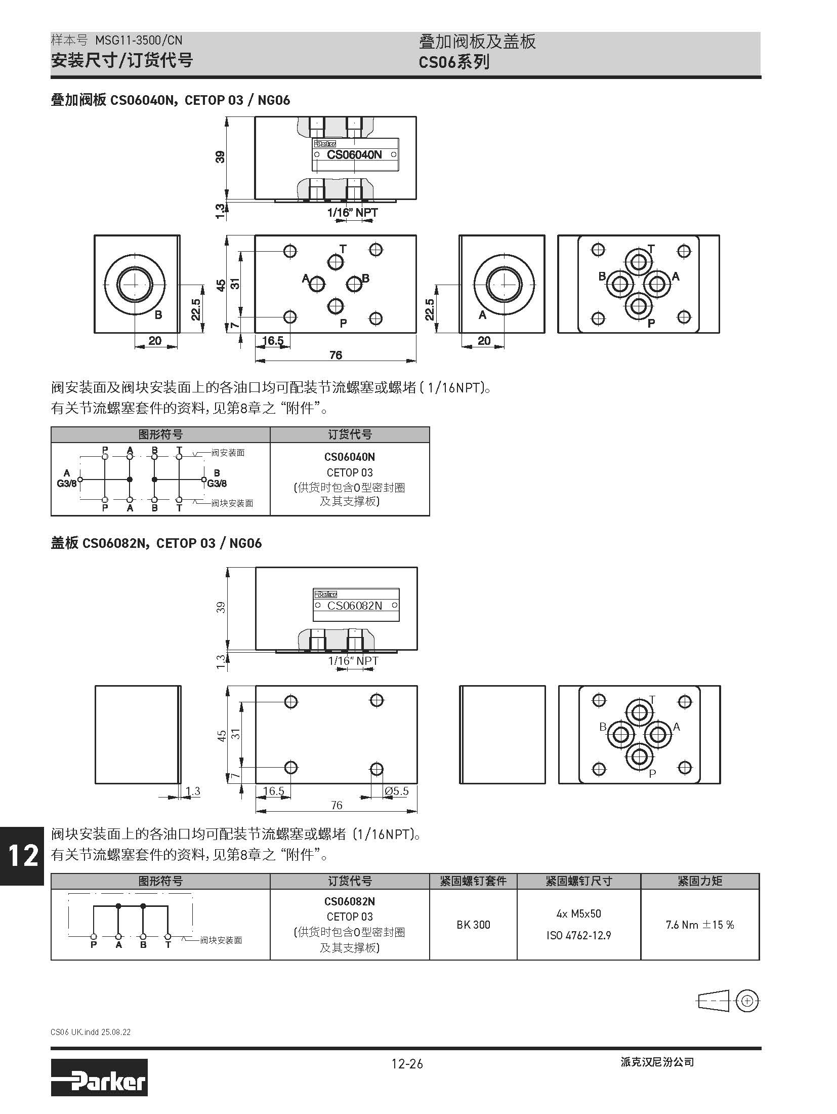 疊加閥板及蓋板 CS06系列