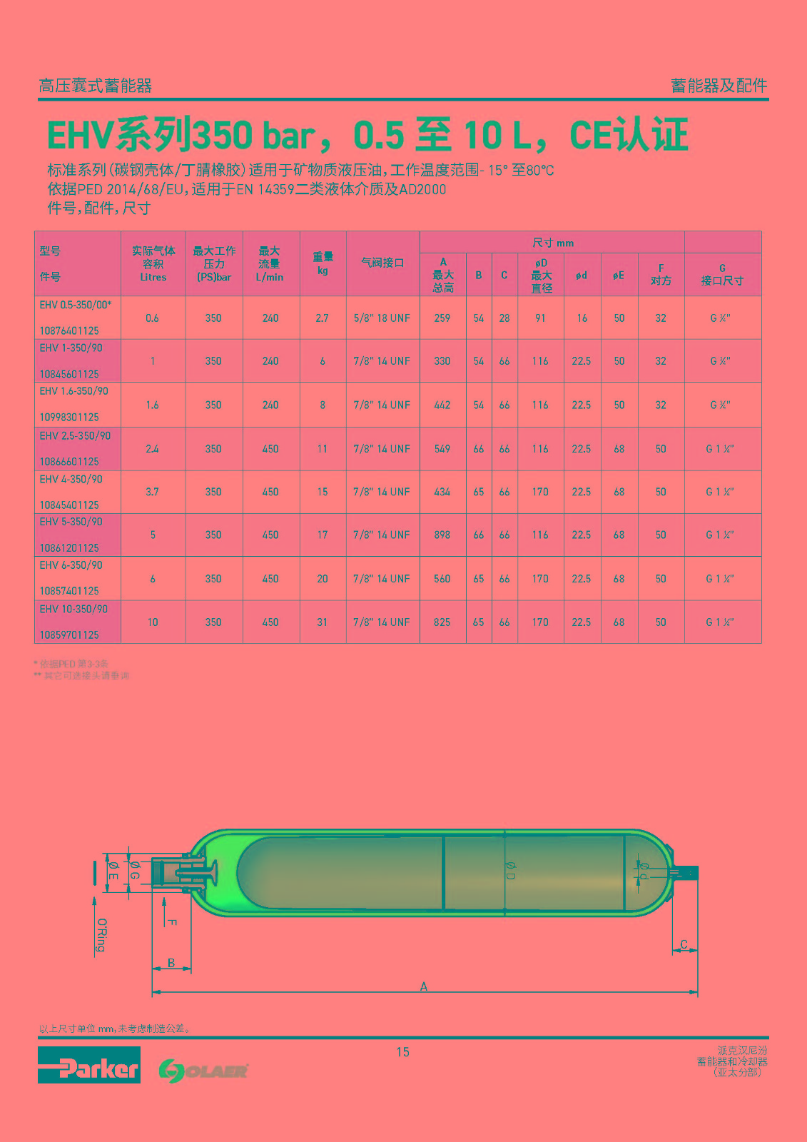 EHV系列350 bar,0.5 至 10 L,CE認證