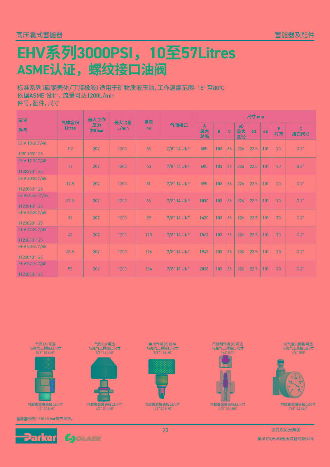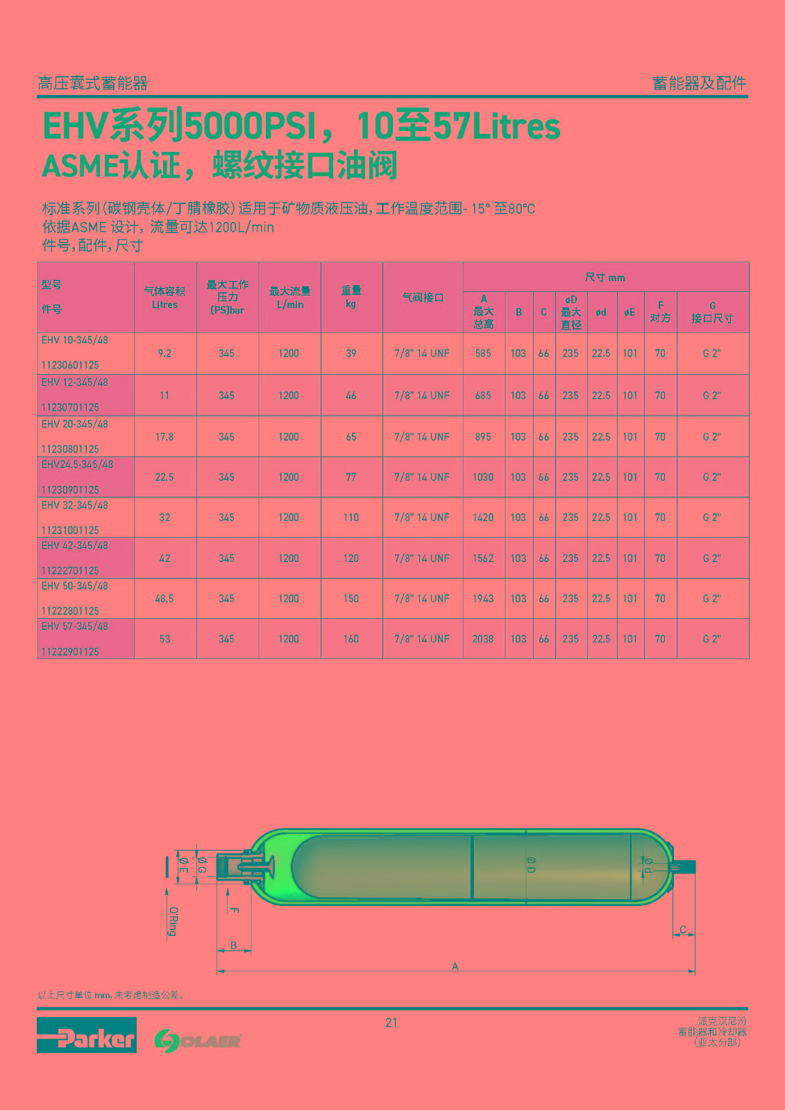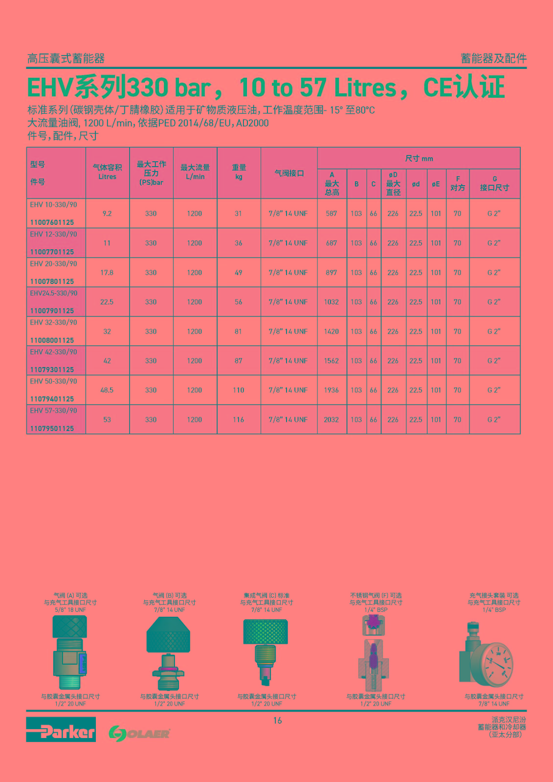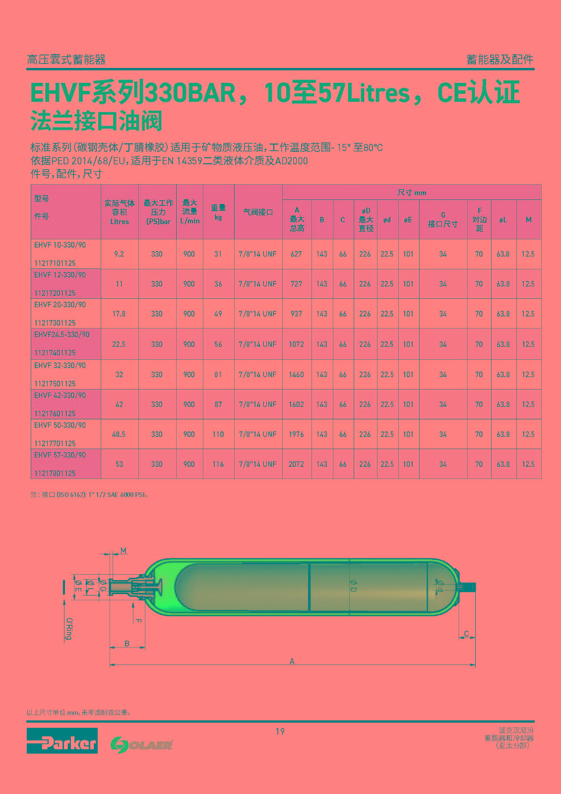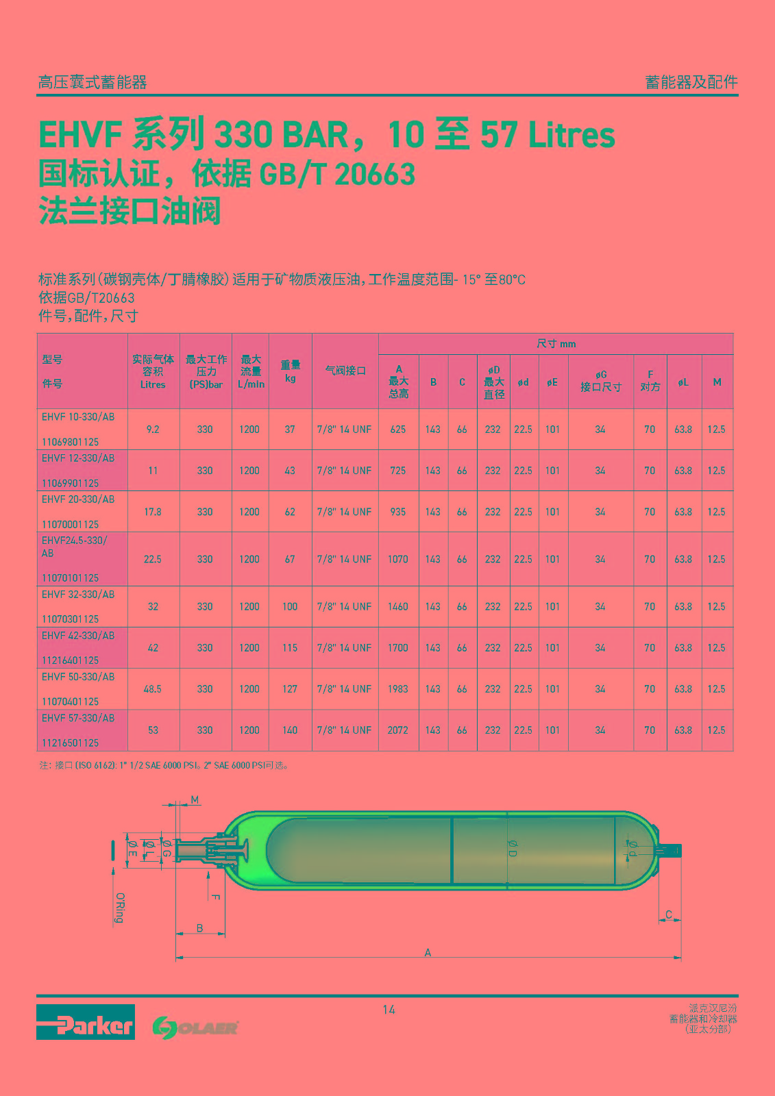 EHVF 系列 330 BAR,10 至 57 Litres 國標認證,依據(jù) GB/T 20663 法蘭接口油閥