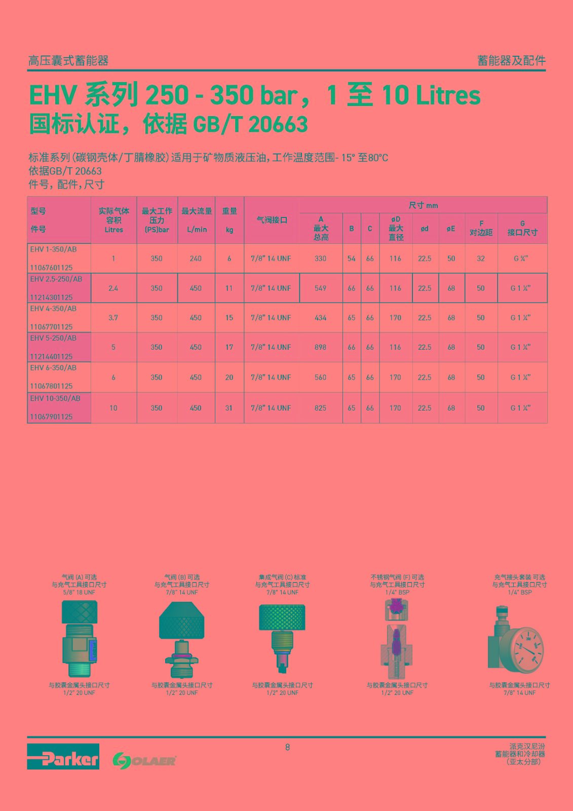 EHV 系列 250 - 350 bar,1 至 10 Litres 國標認證,依據(jù) GB/T 20663