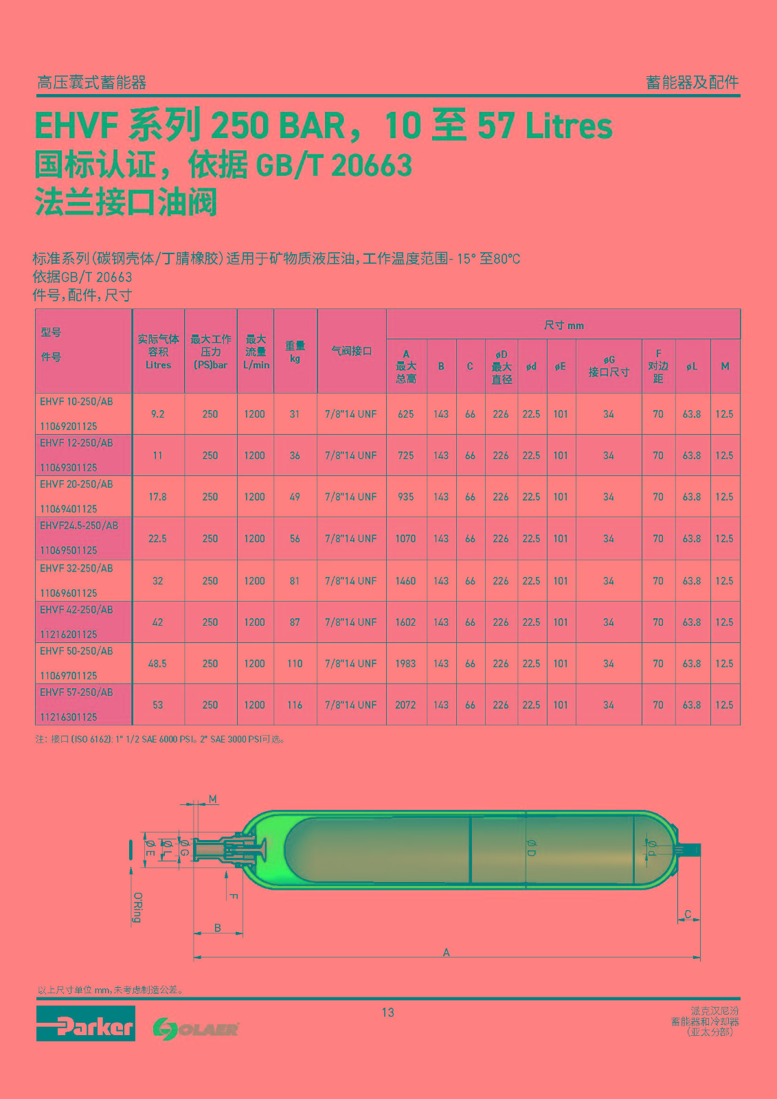 EHVF 系列 250 BAR,10 至 57 Litres 國標認證,依據(jù) GB/T 20663 法蘭接口油閥