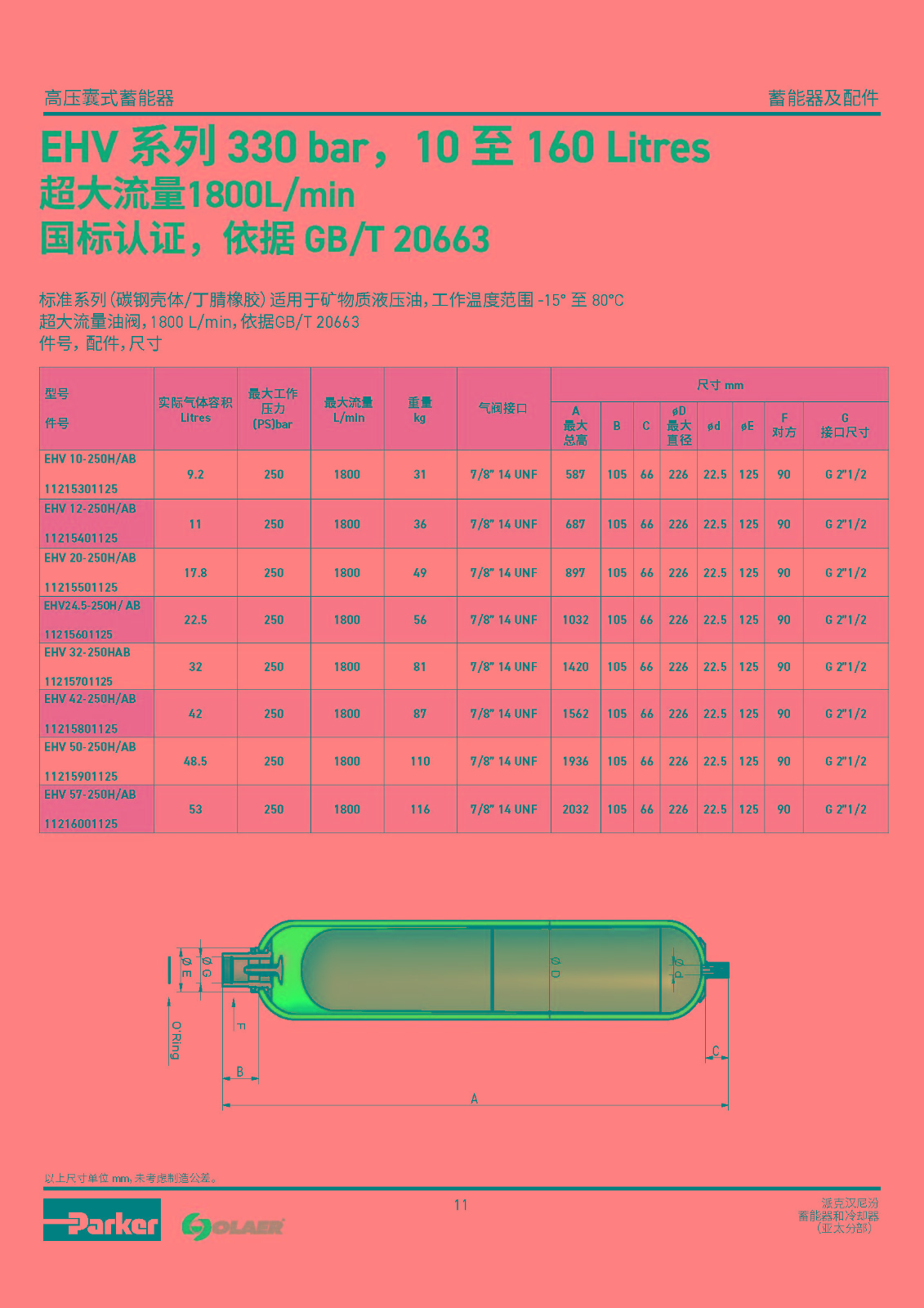EHV 系列 250 bar,10 至 150 Litres 國標認證,依據(jù) GB/T 20663