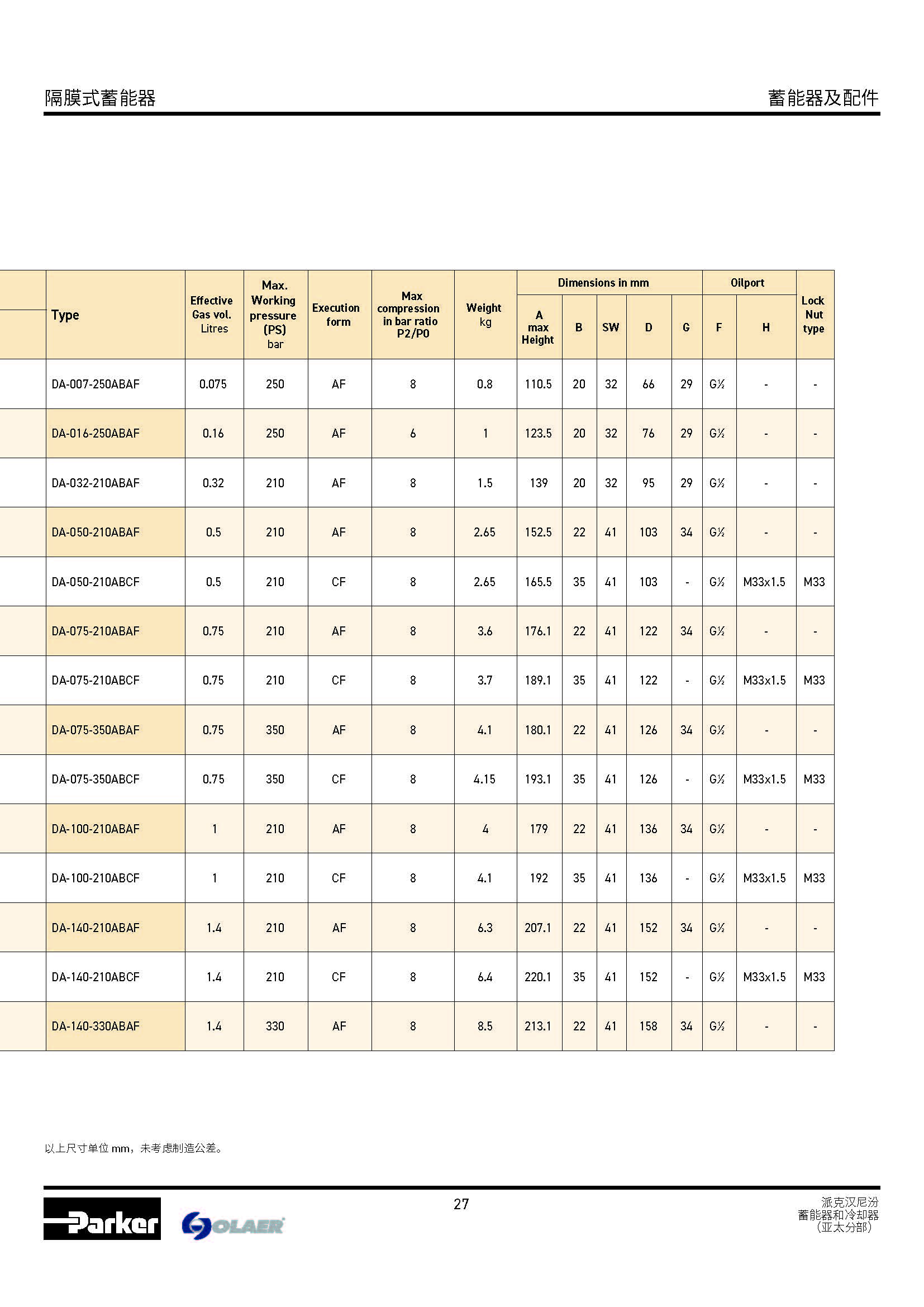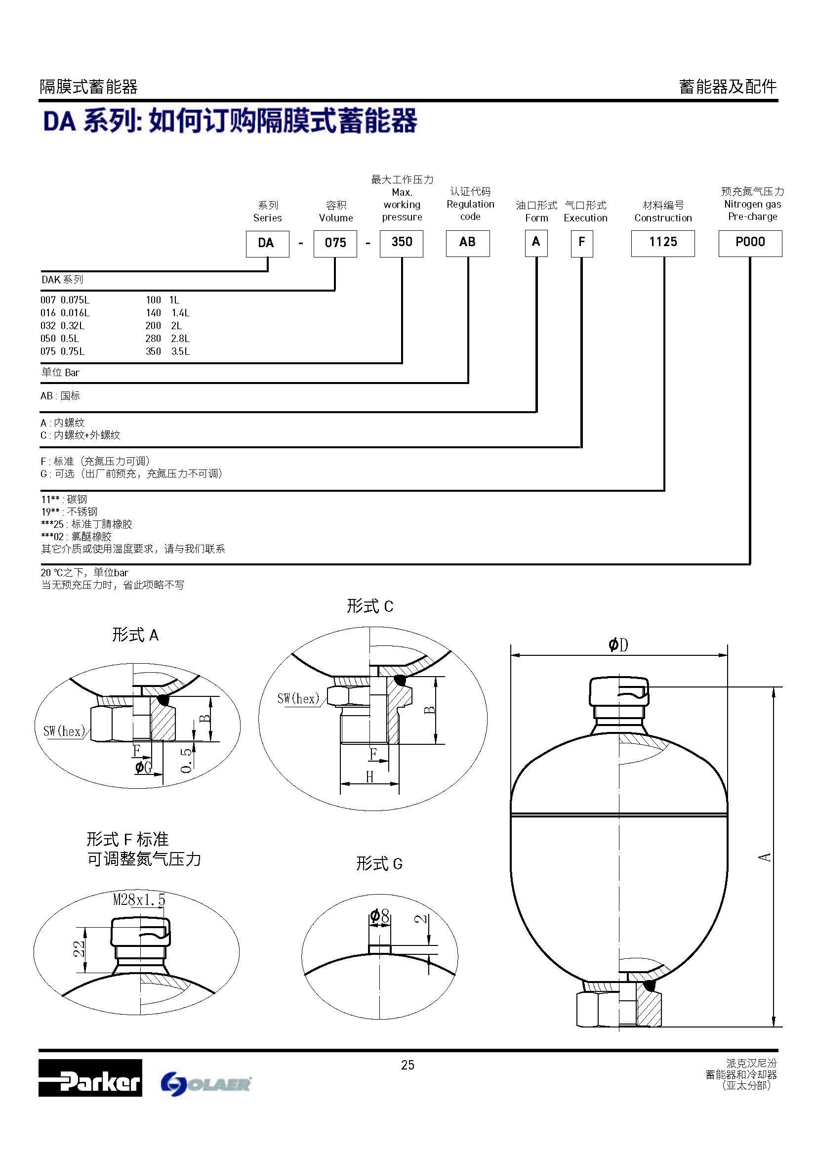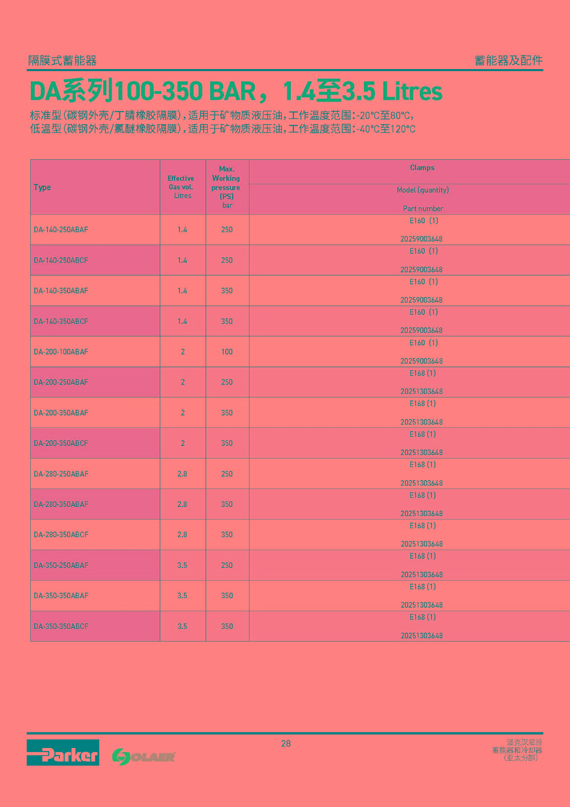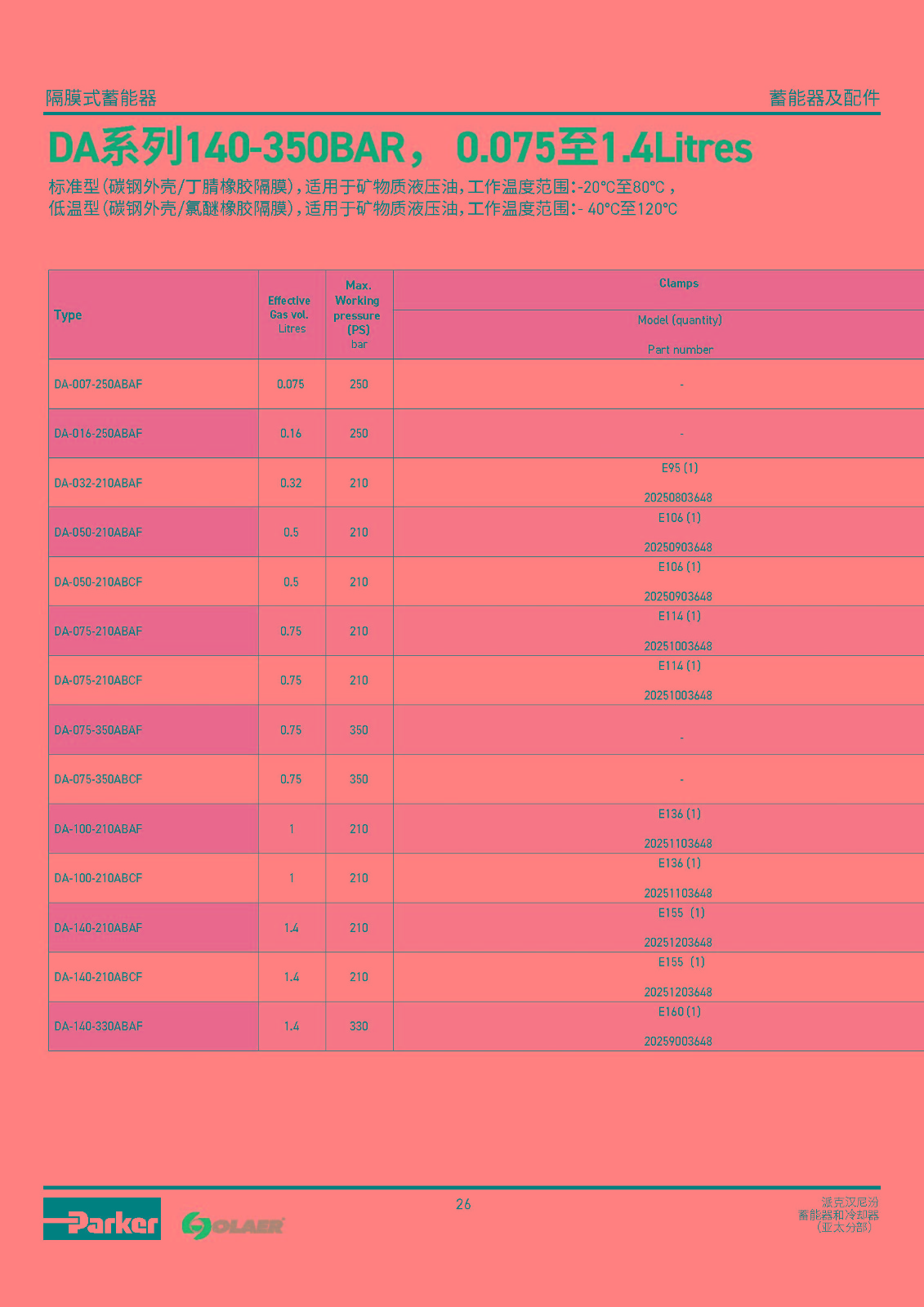 標(biāo)準(zhǔn)型(碳鋼外殼/丁腈橡膠隔膜),適用于礦物質(zhì)液壓油,工作溫度范圍:-20°C至80°C, 低溫型(碳鋼外殼/氯醚橡膠隔膜),適用于礦物質(zhì)液壓油,工作溫度范圍:-40°C至120°C