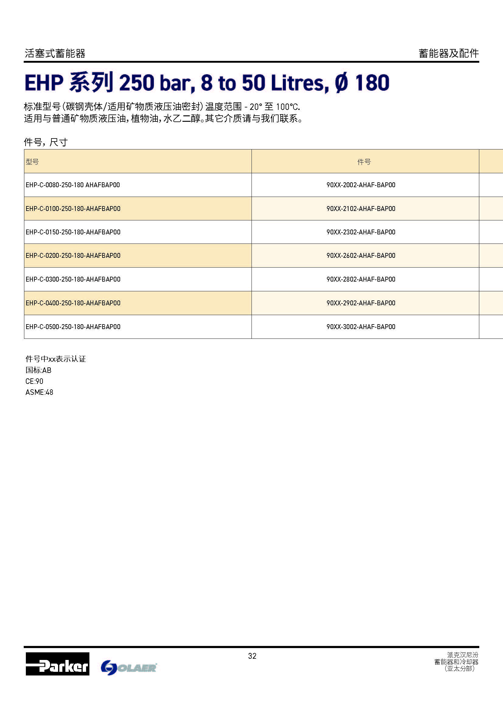 EHP 系列 250 bar, 8 to 50 Litres, ? 180