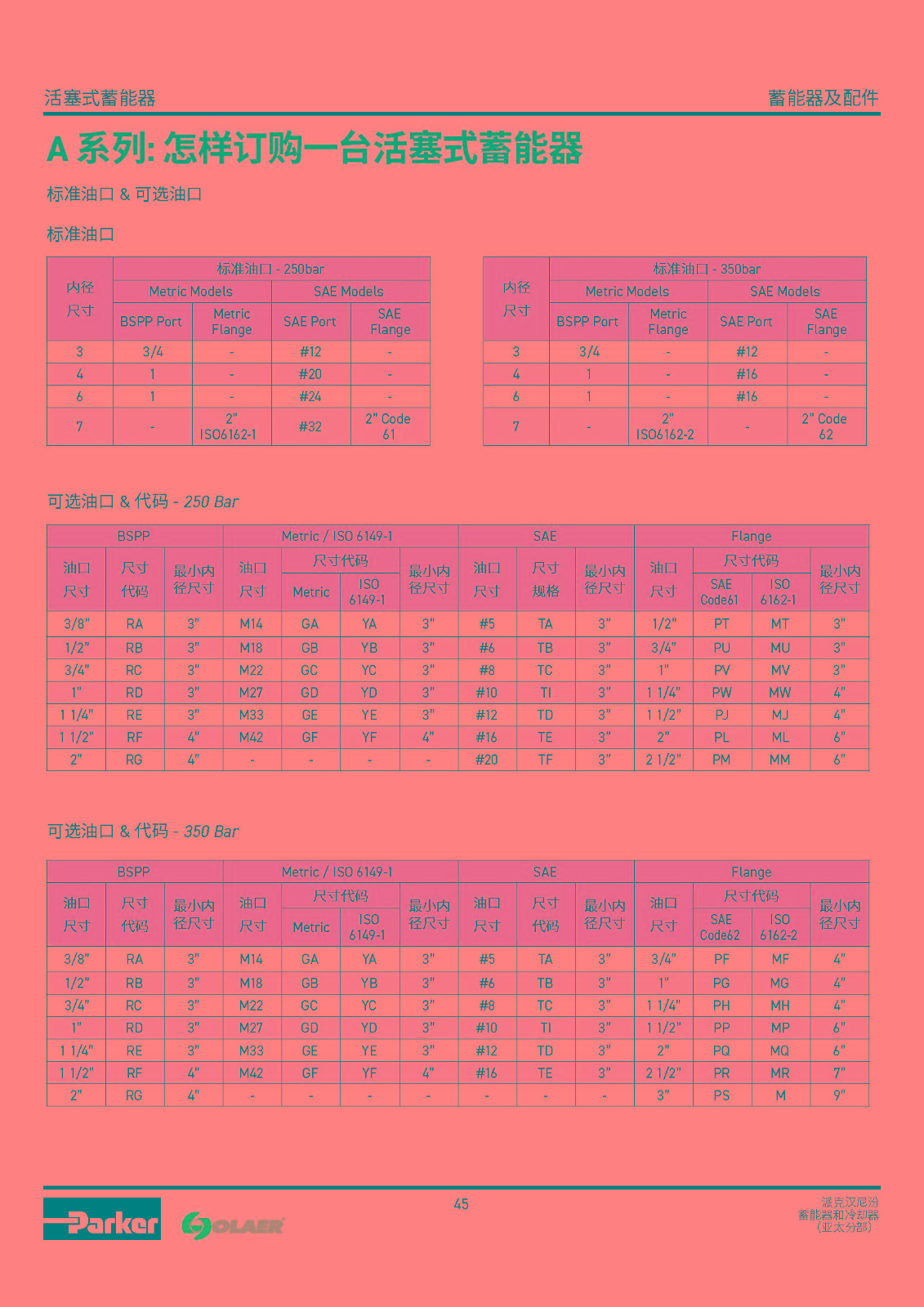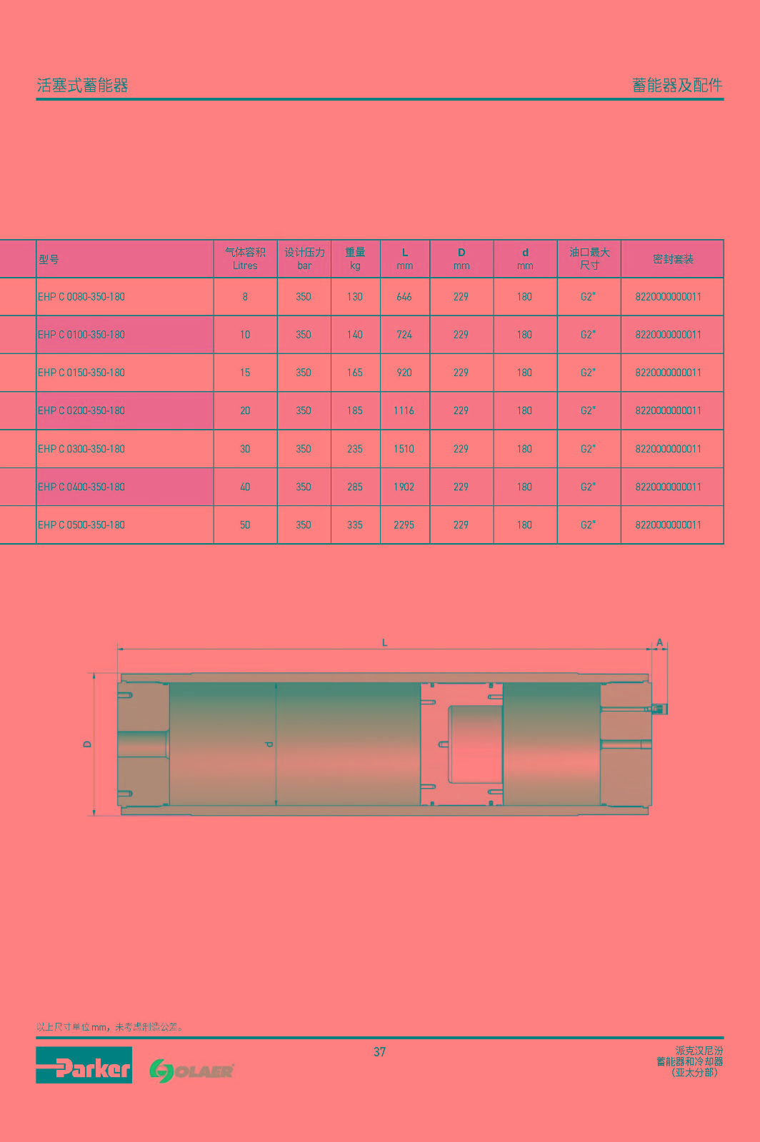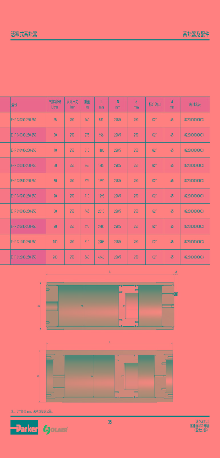 A 系列 250 - 350 Bar 活塞式蓄能器