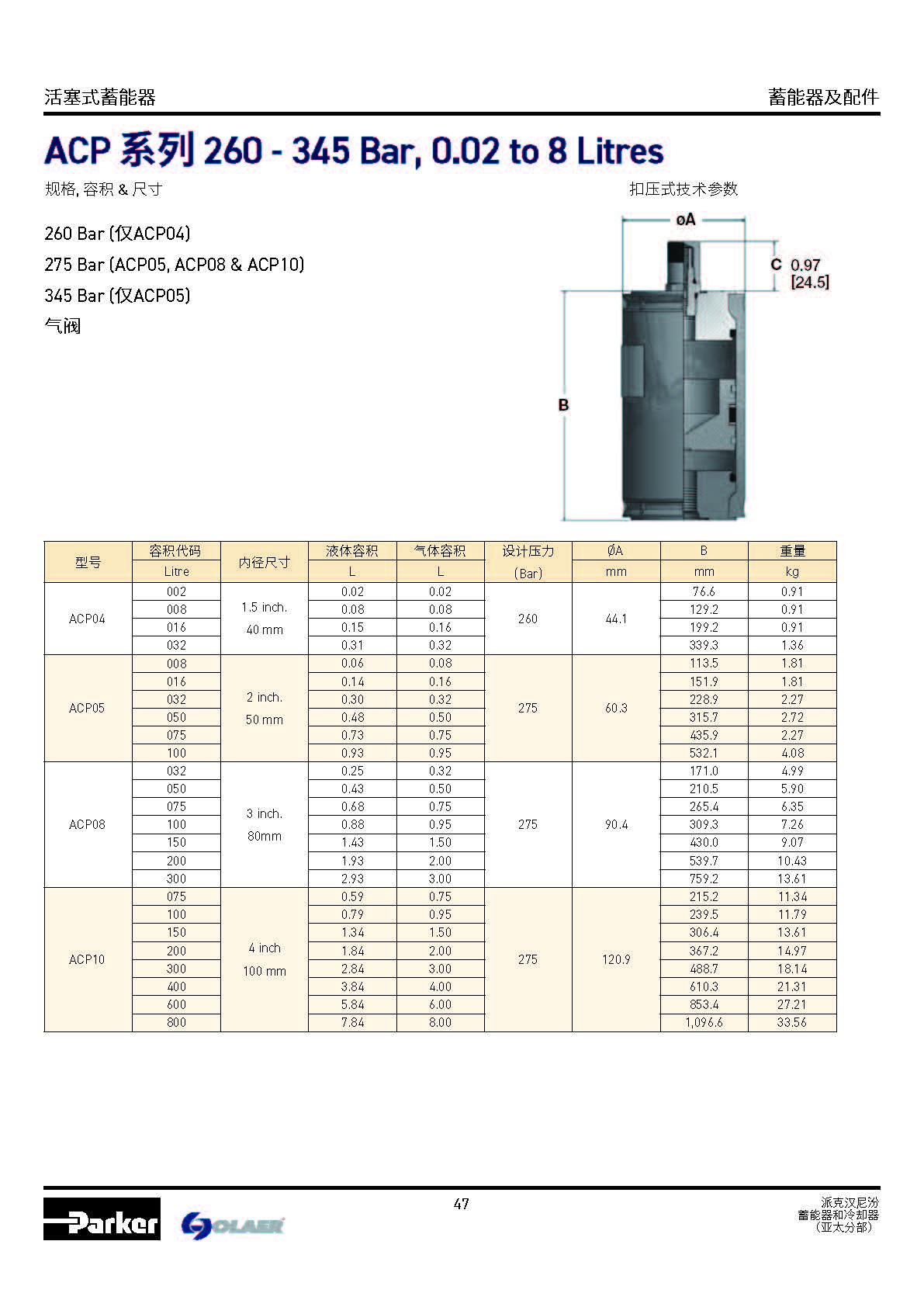 ACP 系列 260 - 345 Bar, 0.02 to 8 Litres