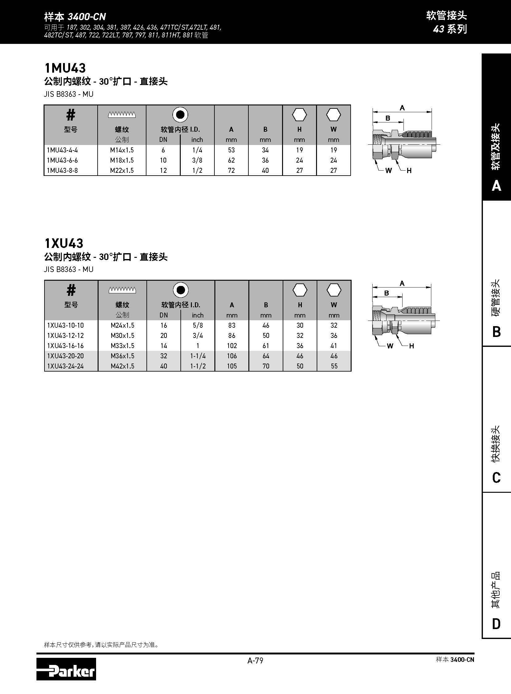 1XU43 公制內(nèi)螺紋 - 30°擴口 - 直接頭 JIS B8363 - MU