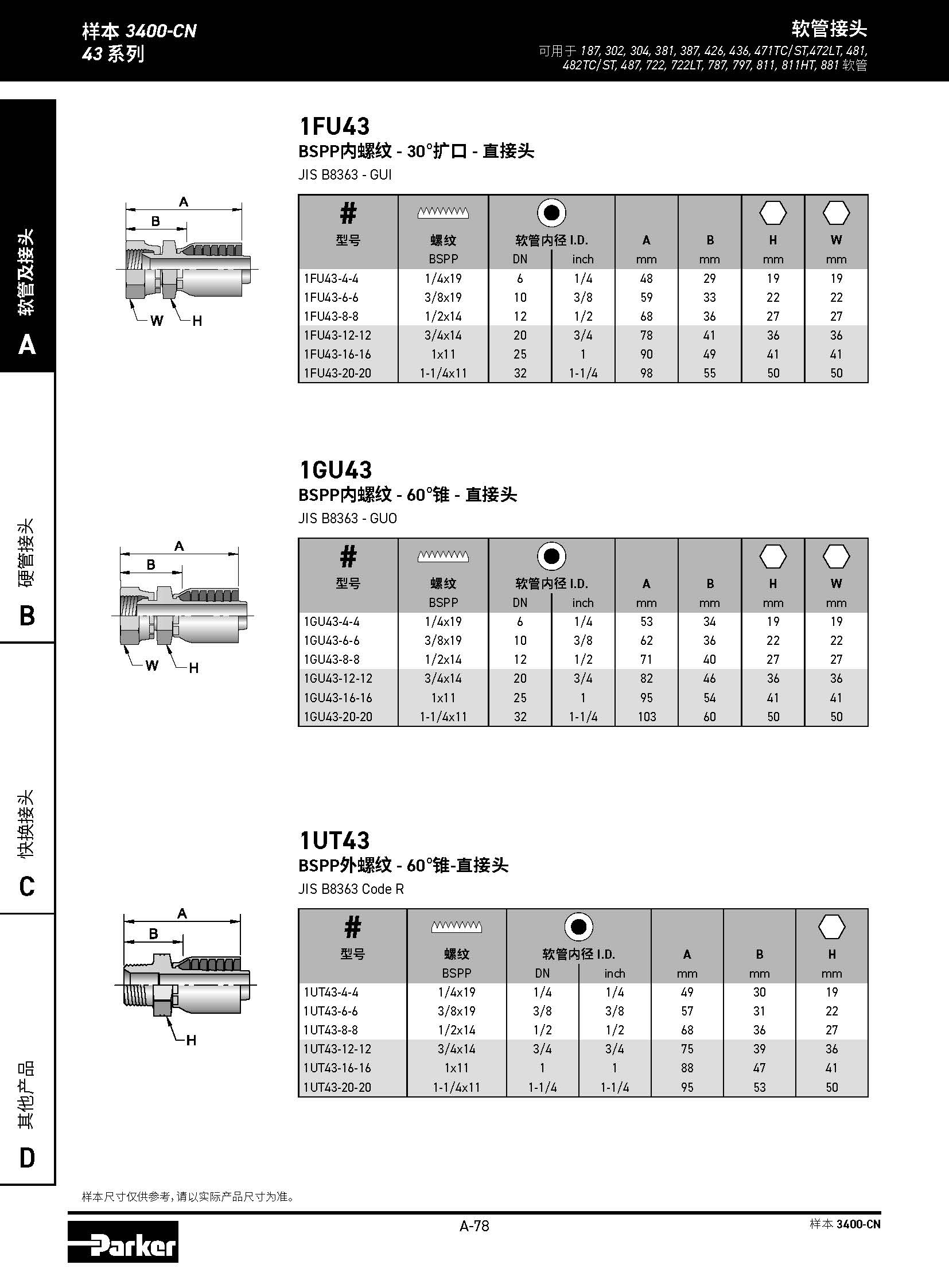 1GU43 BSPP內(nèi)螺紋 - 60°錐 - 直接頭 JIS B8363 - GUO