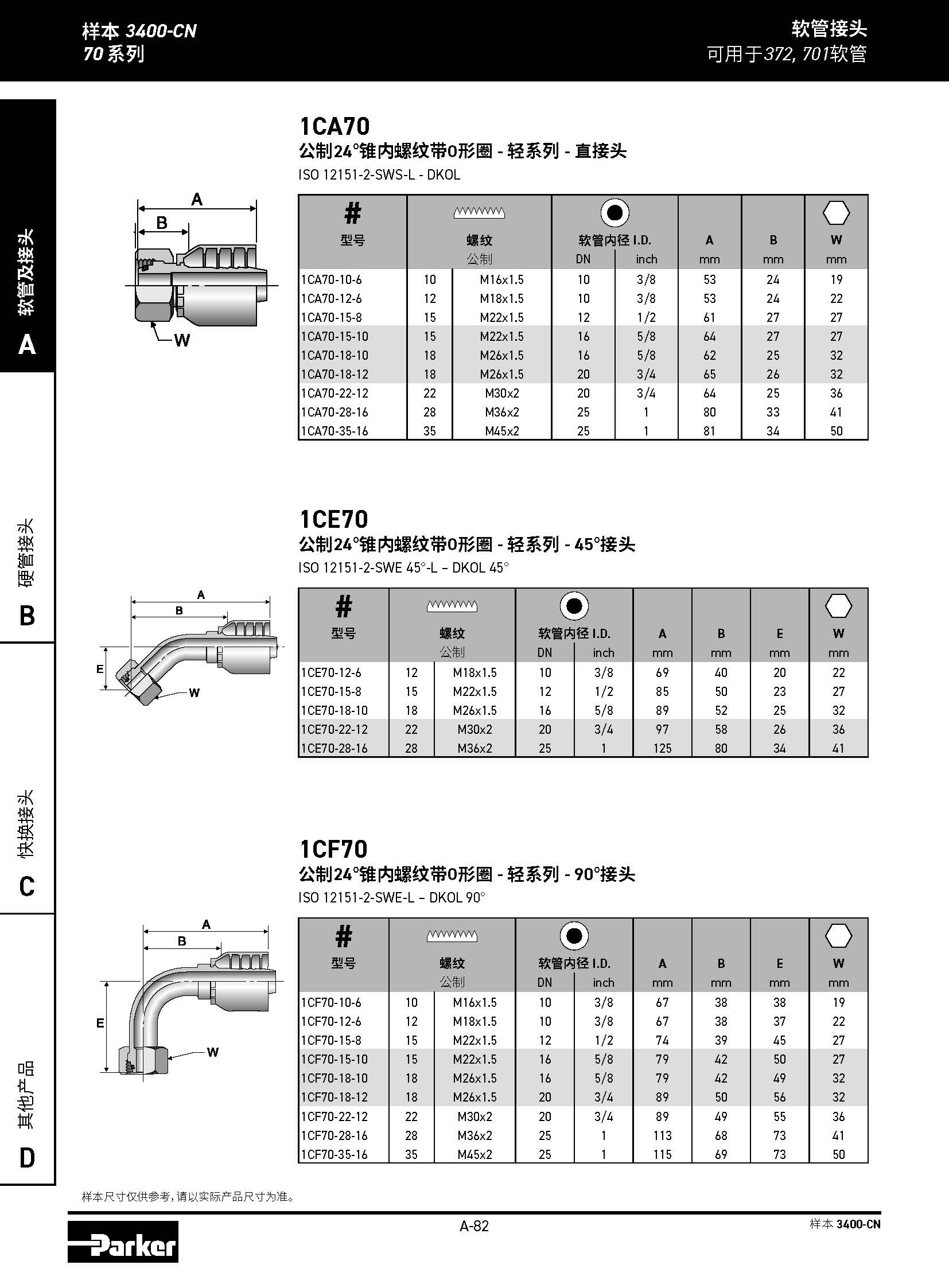 1CA70 公制24°錐內(nèi)螺紋帶O形圈 - 輕系列 - 直接頭 ISO 12151-2-SWS-L - DKOL