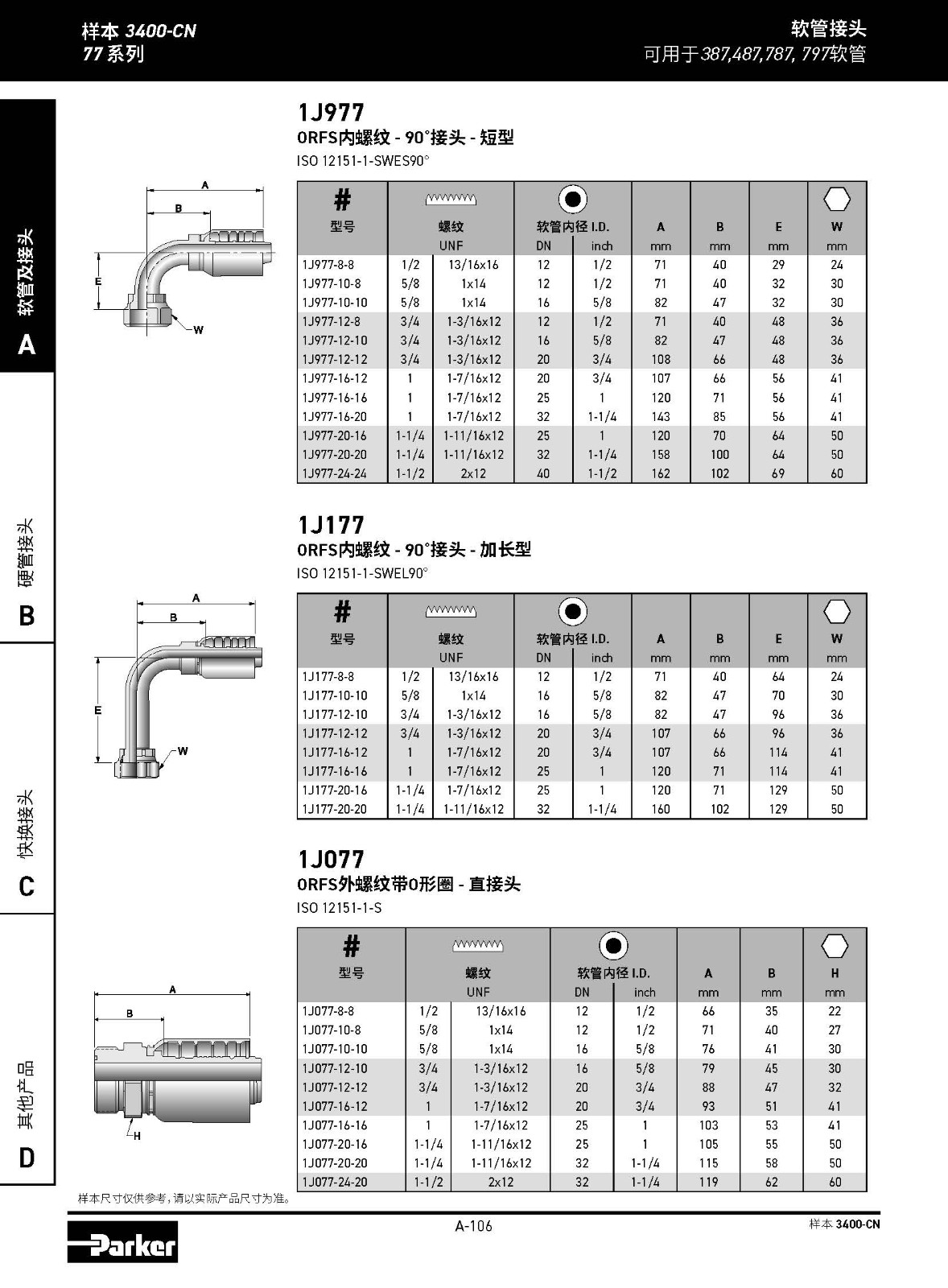 1J177 ORFS內(nèi)螺紋 - 90?接頭 - 加長型 ISO 12151-1-SWEL90