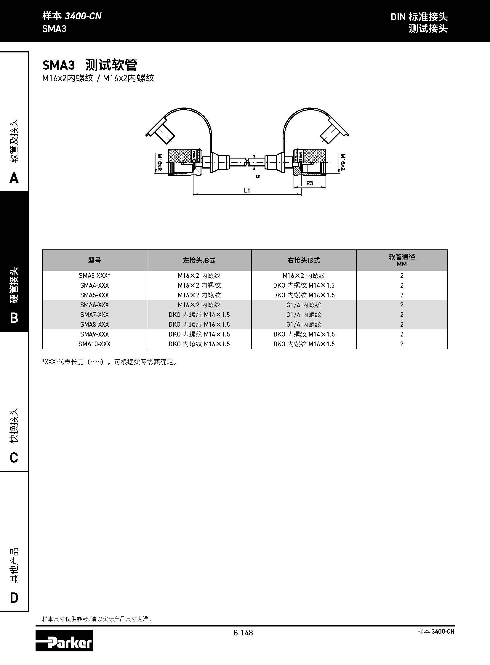 SMA3 測試軟管 M16x2內(nèi)螺紋 / M16x2內(nèi)螺紋
