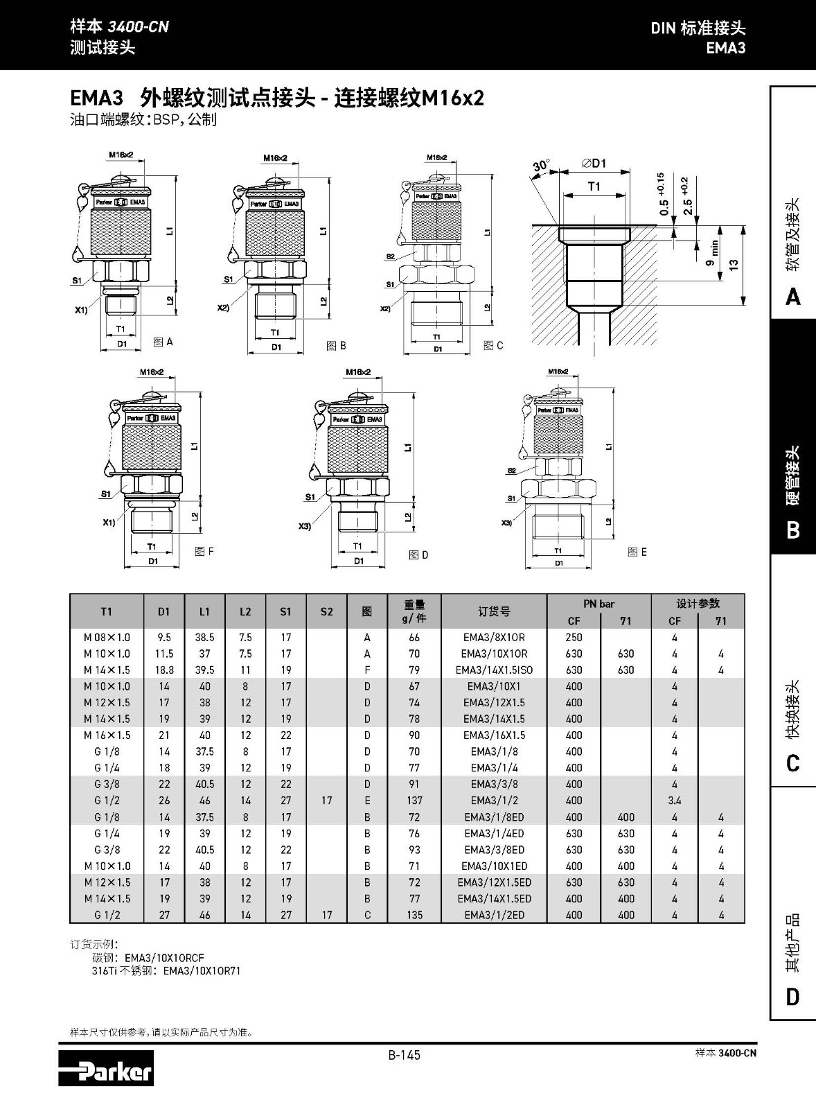 EMA3 外螺紋測試點接頭 - 連接螺紋M16x2 油口端螺紋:BSP,公制