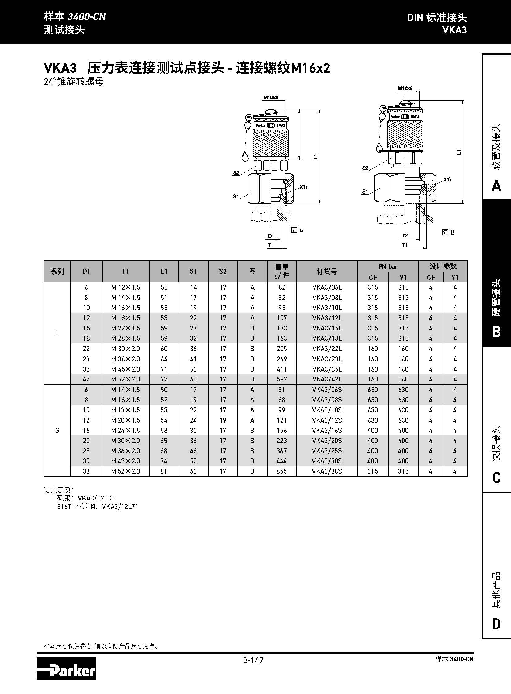 VKA3 壓力表連接測試點接頭 - 連接螺紋M16x2 24°錐旋轉(zhuǎn)螺母
