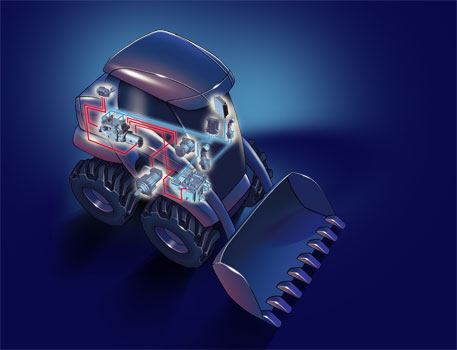 丹佛斯產(chǎn)品中可應用在輪式轉(zhuǎn)載機上的有:開式回路柱塞泵,及PLUS+1電控產(chǎn)品。